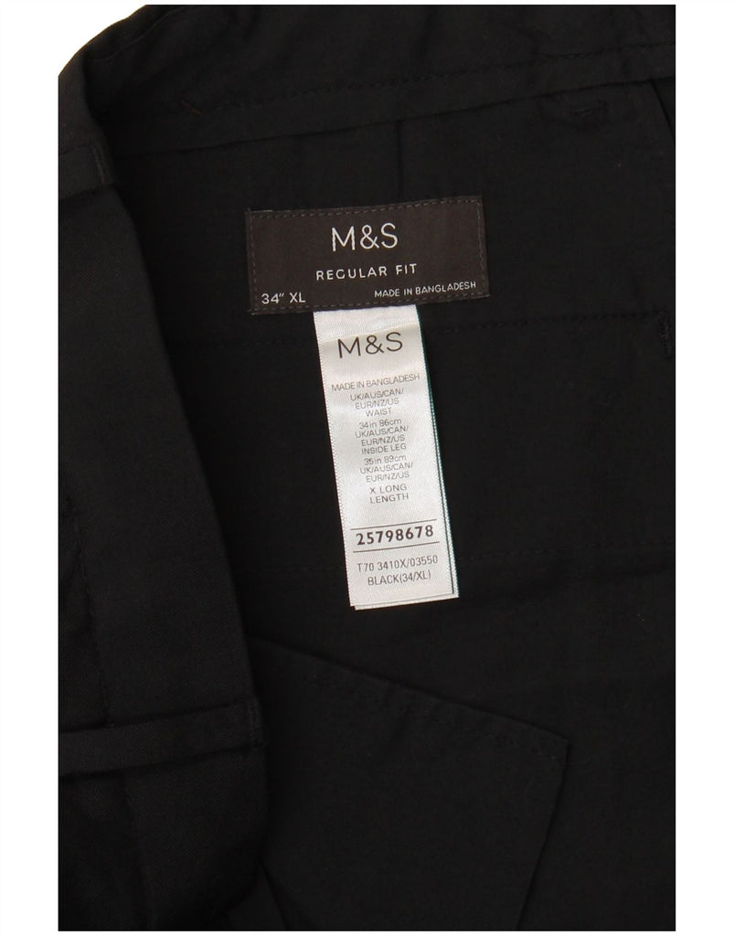 MARKS & SPENCER Mens Regular Fit Chino Trousers W34 L35 Black Polyester