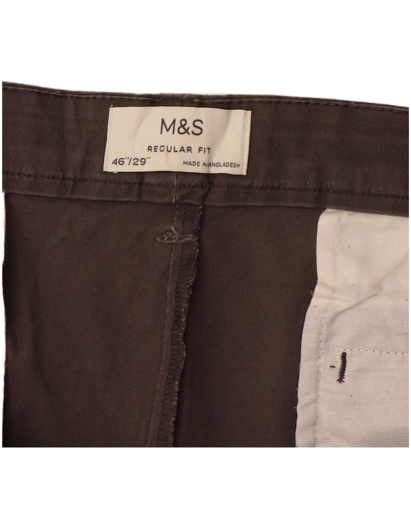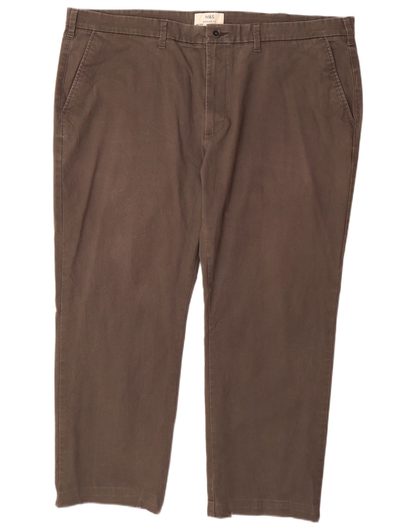 MARKS & SPENCER Mens Regular Fit Chino Trousers W46 L29 Brown Cotton
