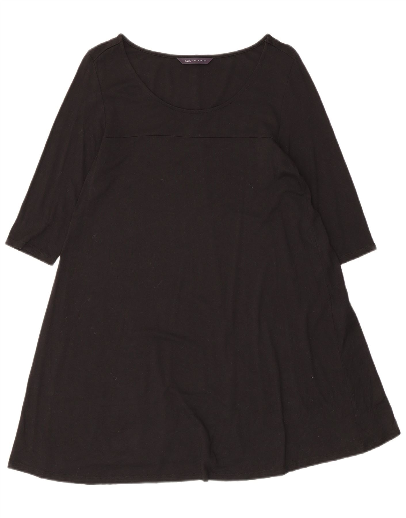 Marks & Spencer Damen-Kleid in A-Linie mit 3/4-Ärmeln, Größe S, Schwarz, Viskose