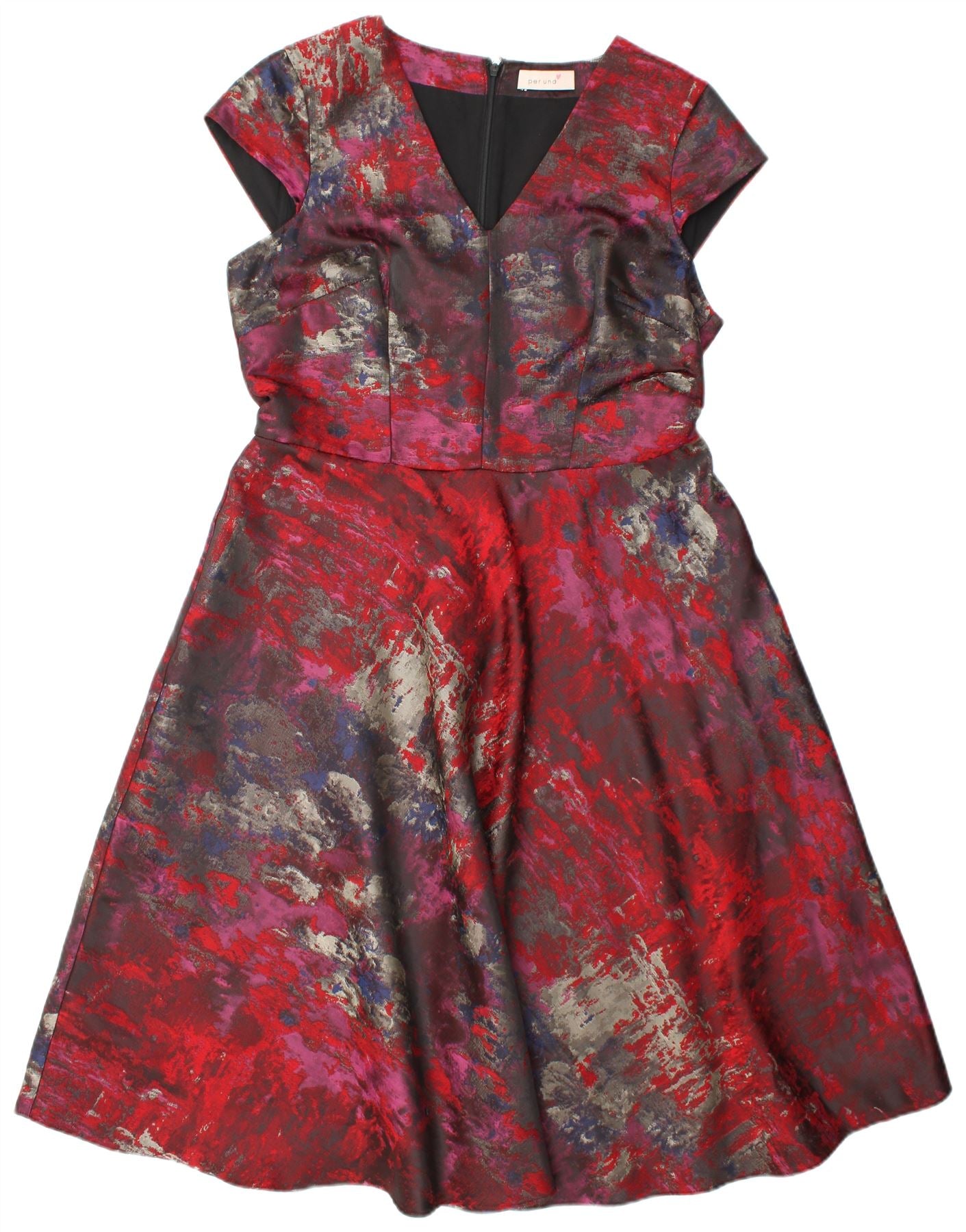 MARKS & SPENCER Damen-A-Linien-Kleid mit abstraktem Muster, Größe 44, Rot