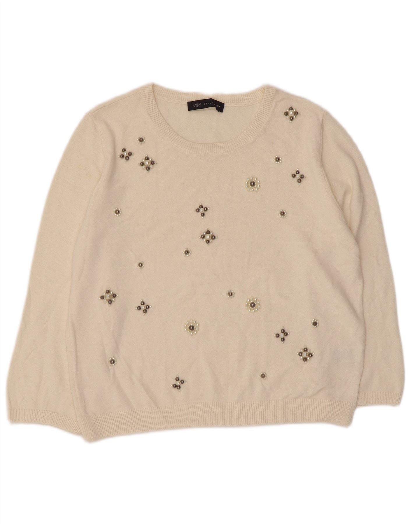 MARKS & SPENCER Damen-Pullover mit U-Boot-Ausschnitt, UK-Gr. 14, Größe L, gebrochenes Weiß