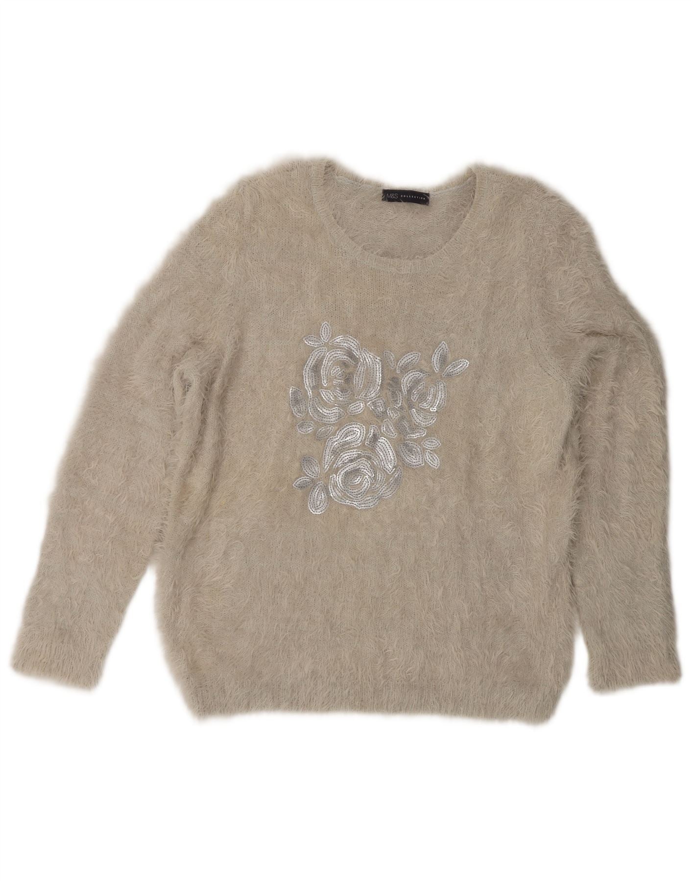 Marks & Spencer Damen-Pullover mit U-Boot-Ausschnitt, Gr. 42, Größe L, Grau, Blumenmuster