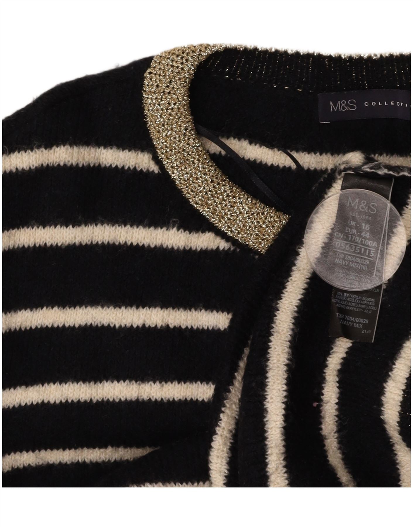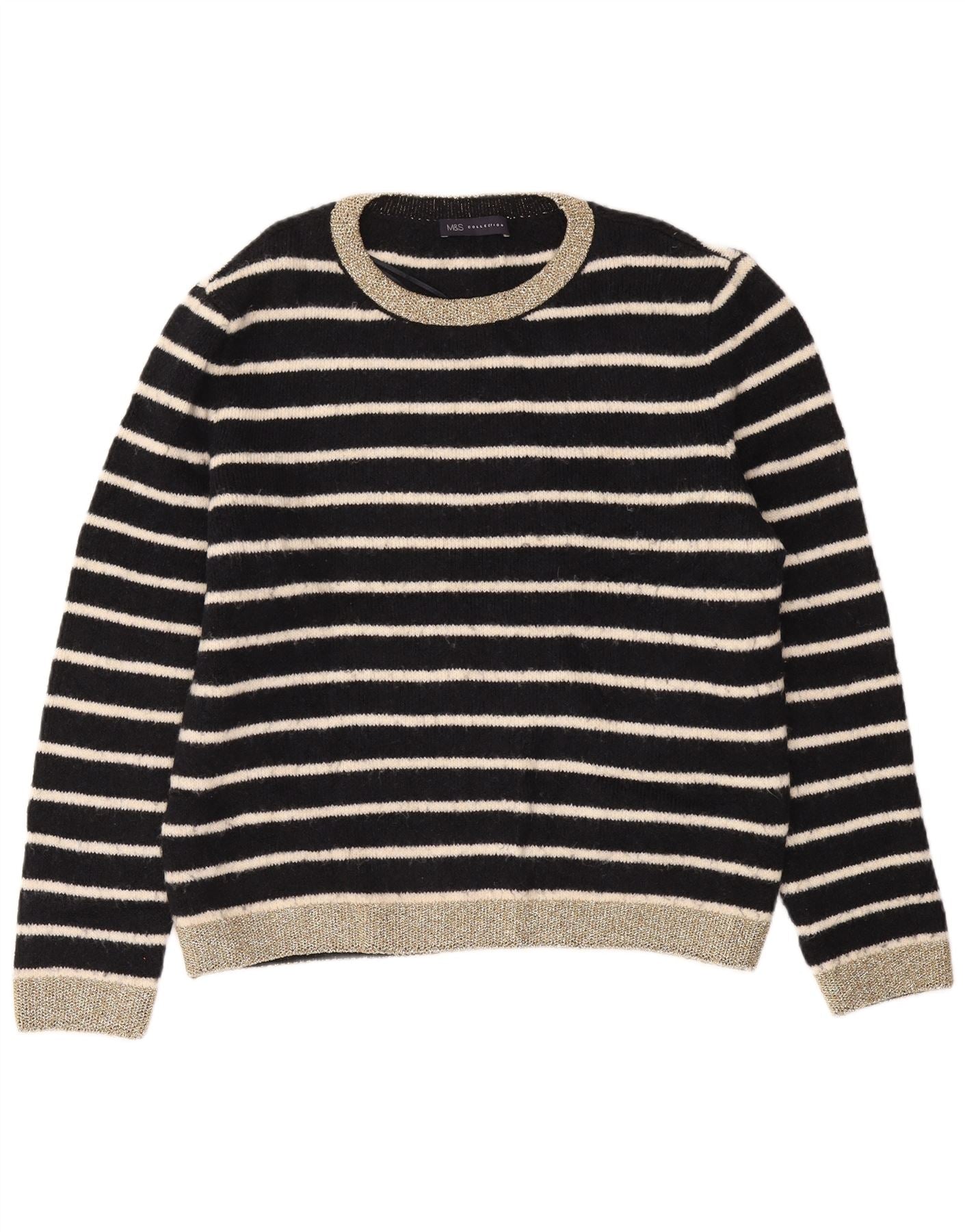 MARKS & SPENCER Damen-Pullover mit Rundhalsausschnitt, Gr. 16, Größe L, schwarz gestreift