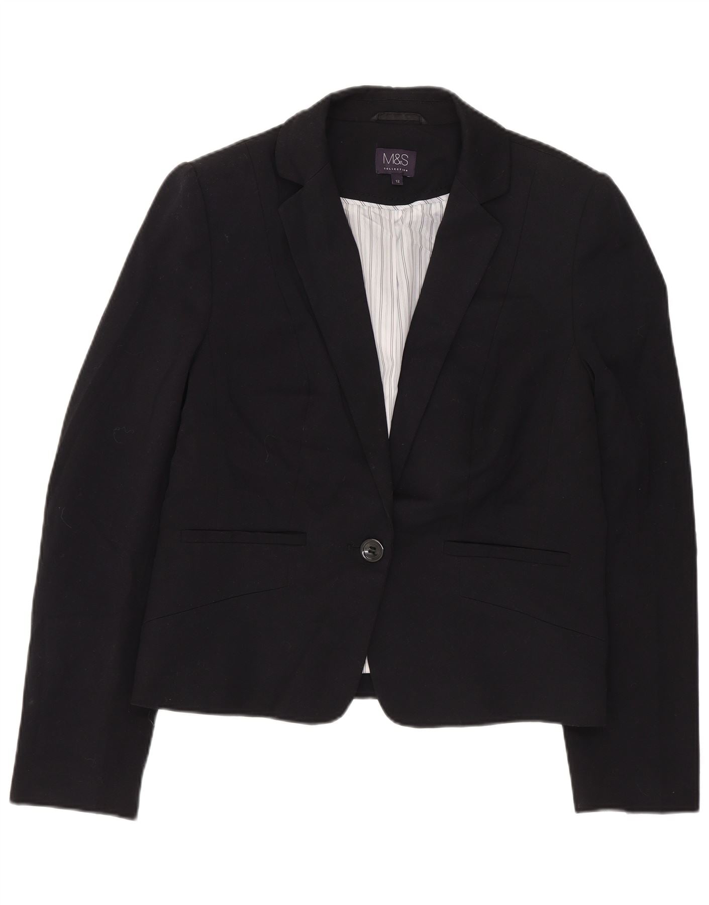 Marks & Spencer Damen Crop 1 Button Blazer Jacke UK 12 Medium Schwarz