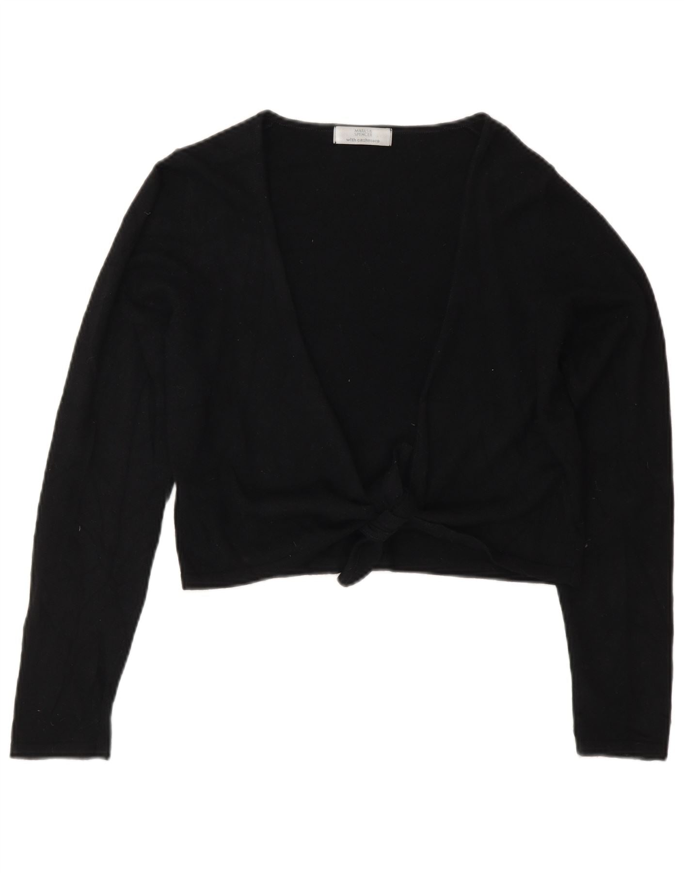 Marks & Spencer Damen Crop Cardigan Pullover UK 10 Small Schwarze Viskose