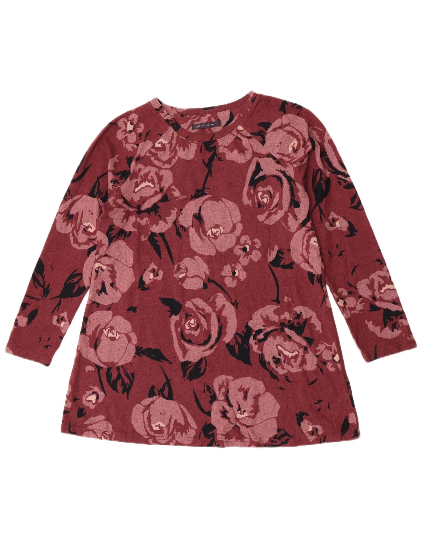 Marks & Spencer Womens Graphic Top Langarm UK 16 Large Burgundy Floral