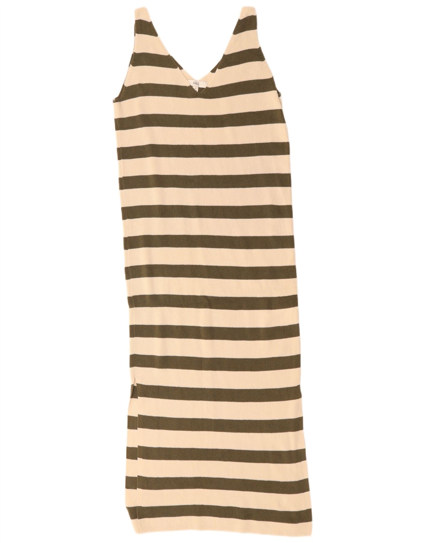 Marks & Spencer Damen Ärmelloses Pulloverkleid UK 14 Mittelgrün gestreift