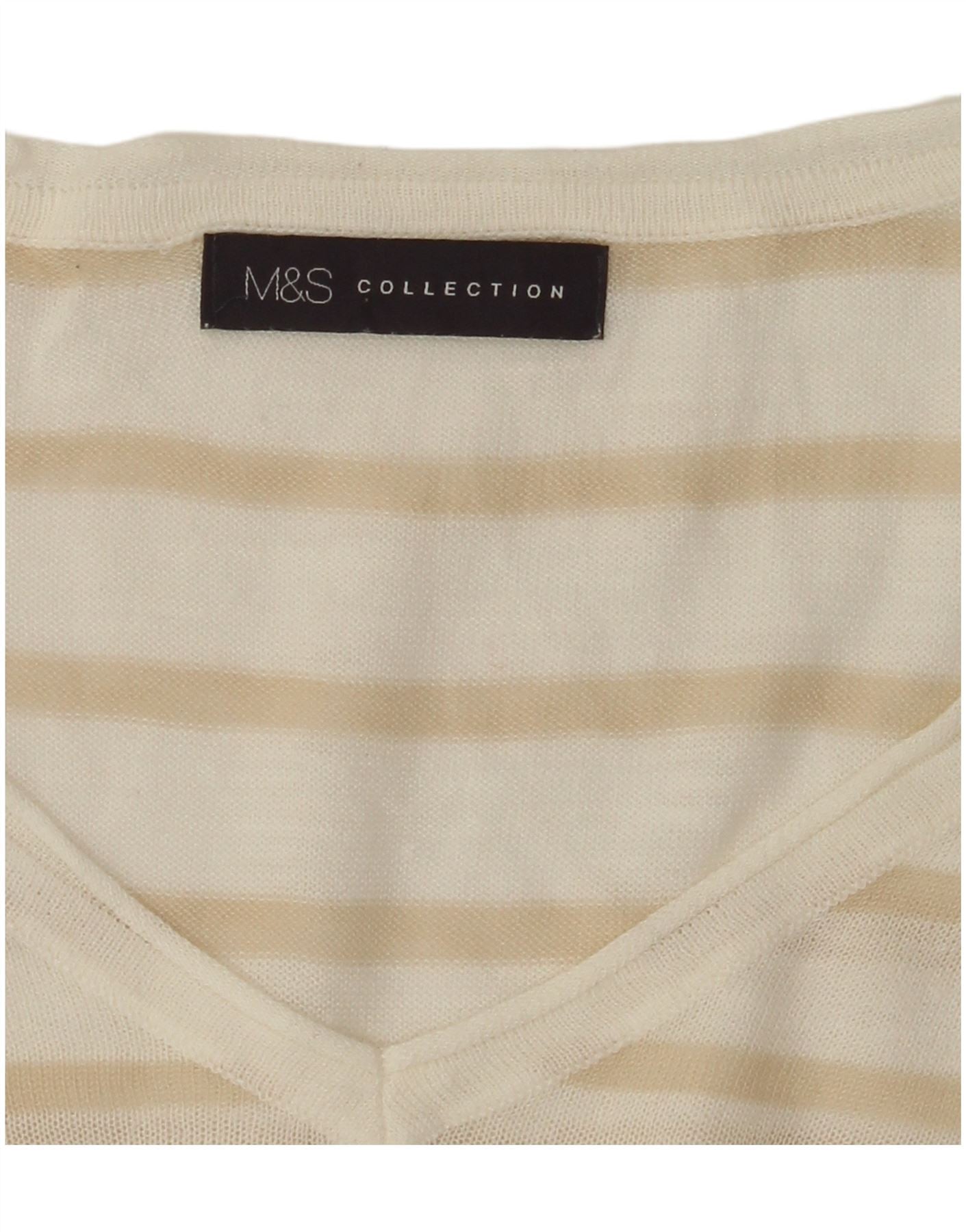 MARKS & SPENCER Damen-Pullover mit V-Ausschnitt, Gr. 40, Größe L, weiß gestreift