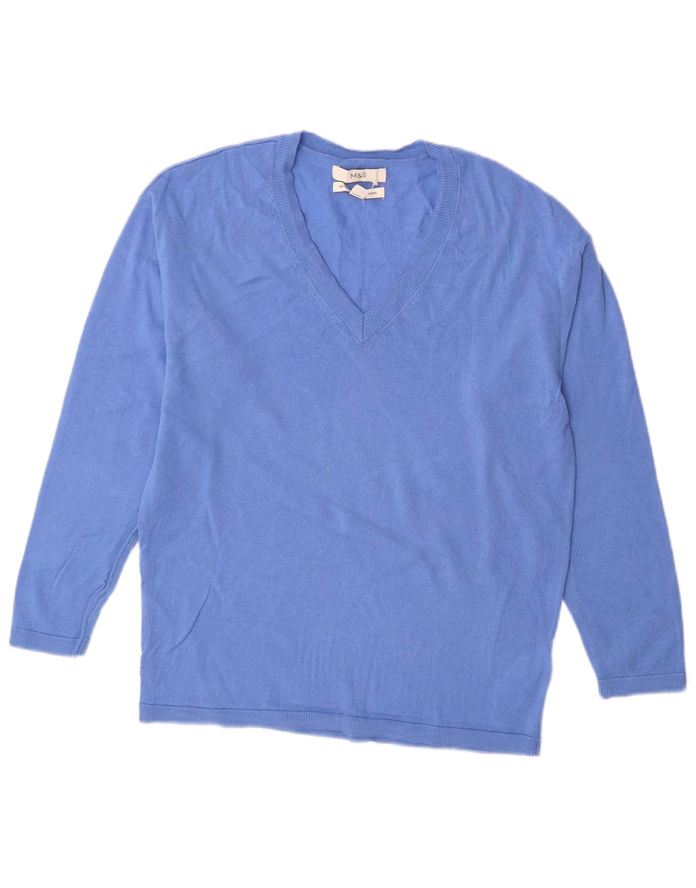 Marks & Spencer Damen-Pullover mit V-Ausschnitt, Gr. 6, XS, blaue Merinowolle