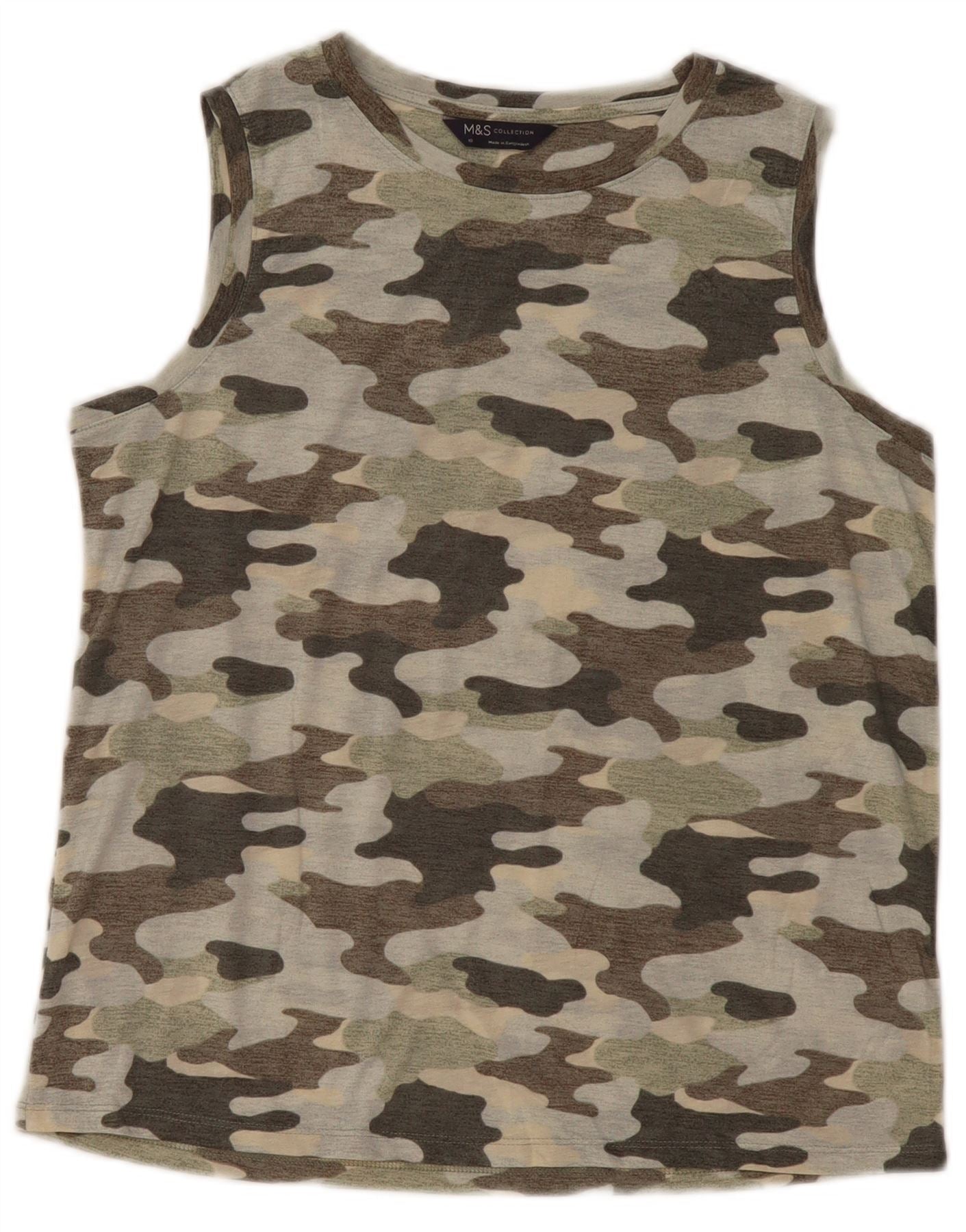 MARKS & SPENCER Damen Weste Top UK 10 Small Khaki Camouflage Polyester