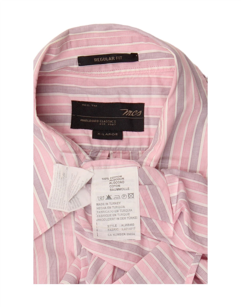 MARLBORO CLASSICS Mens Regular Fit Short Sleeve Shirt XL Pink Striped