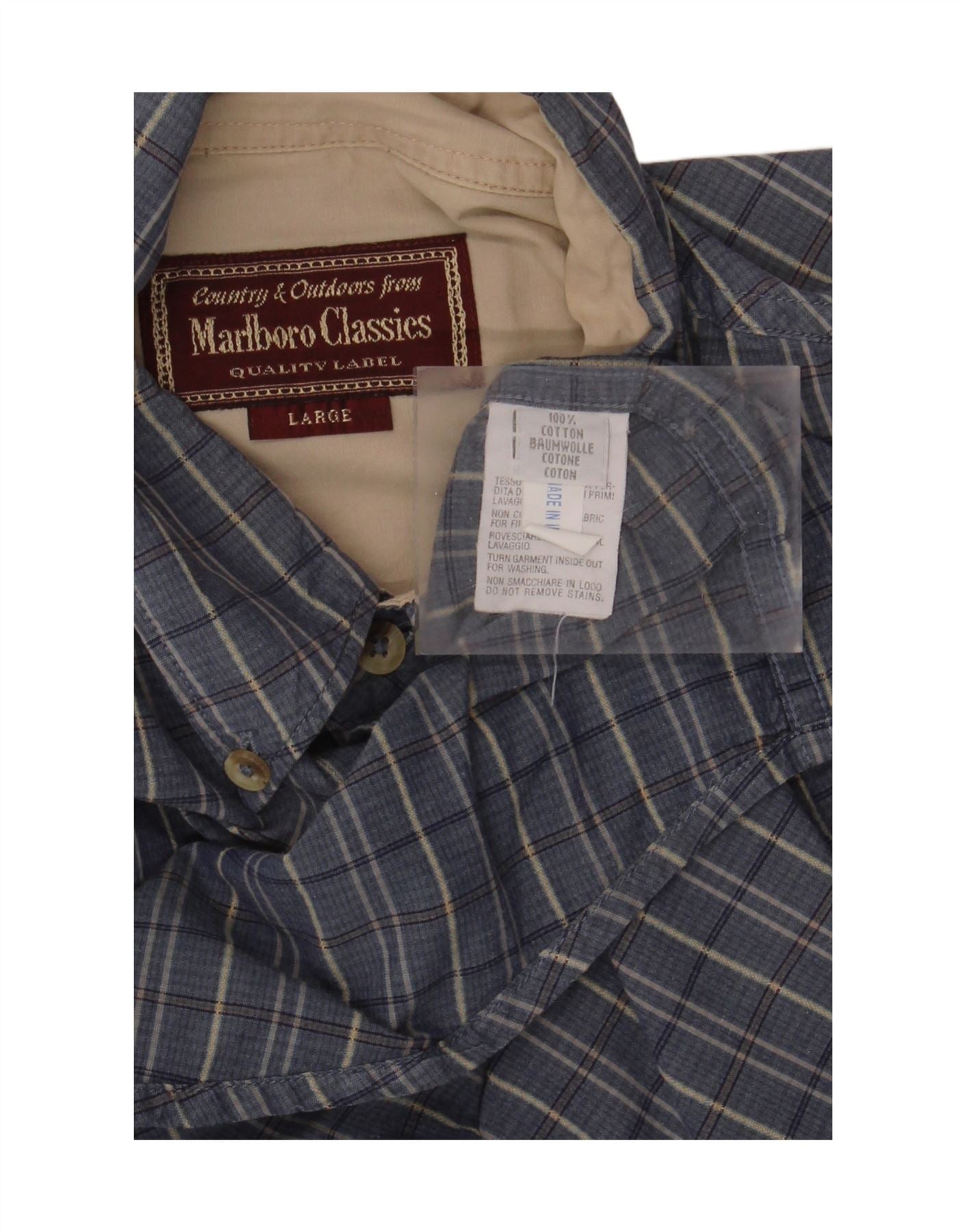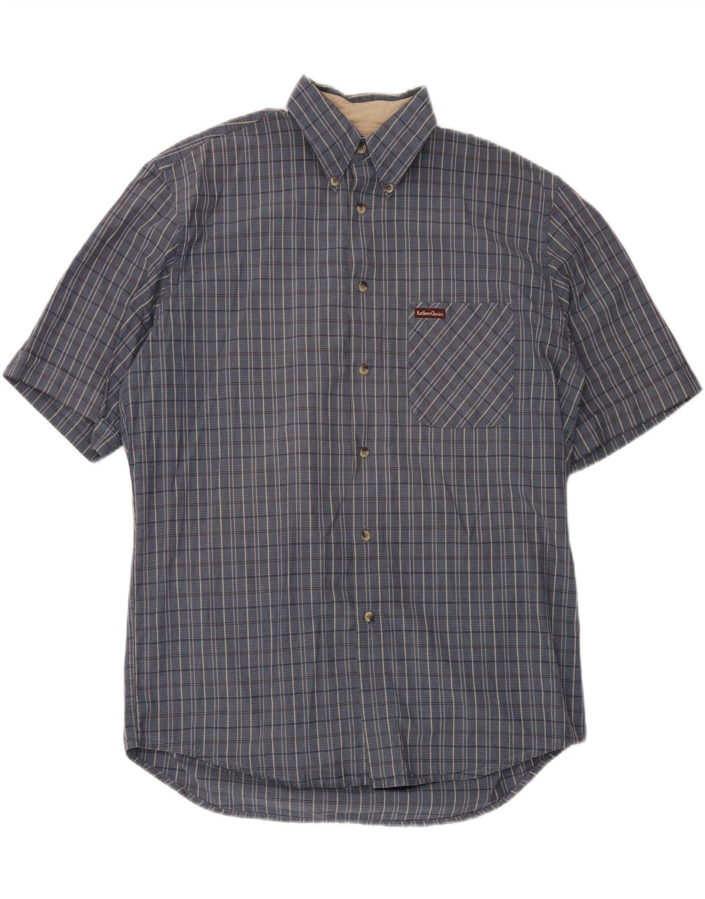 MARLBORO CLASSICS Herren-Kurzarmhemd, groß, blau kariert, Baumwolle