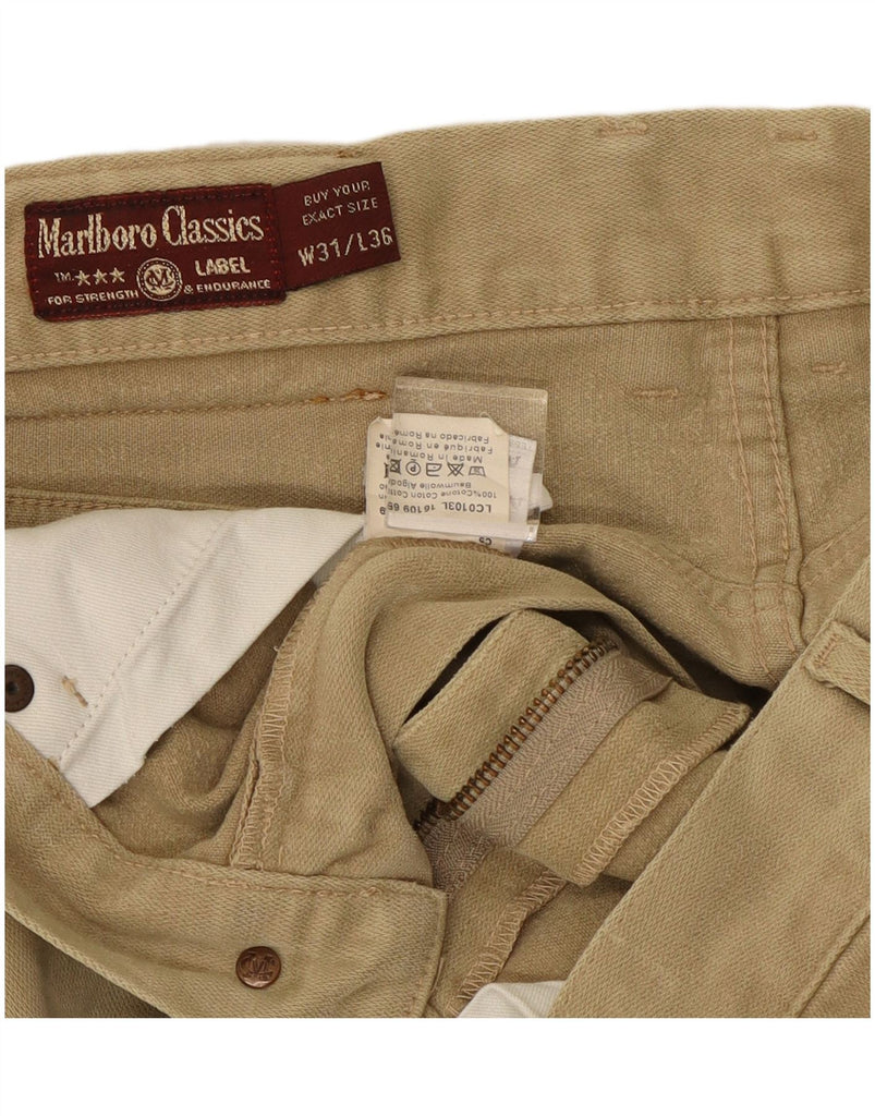 MARLBORO CLASSICS Mens Straight Casual Trousers W31 L29 Khaki Cotton