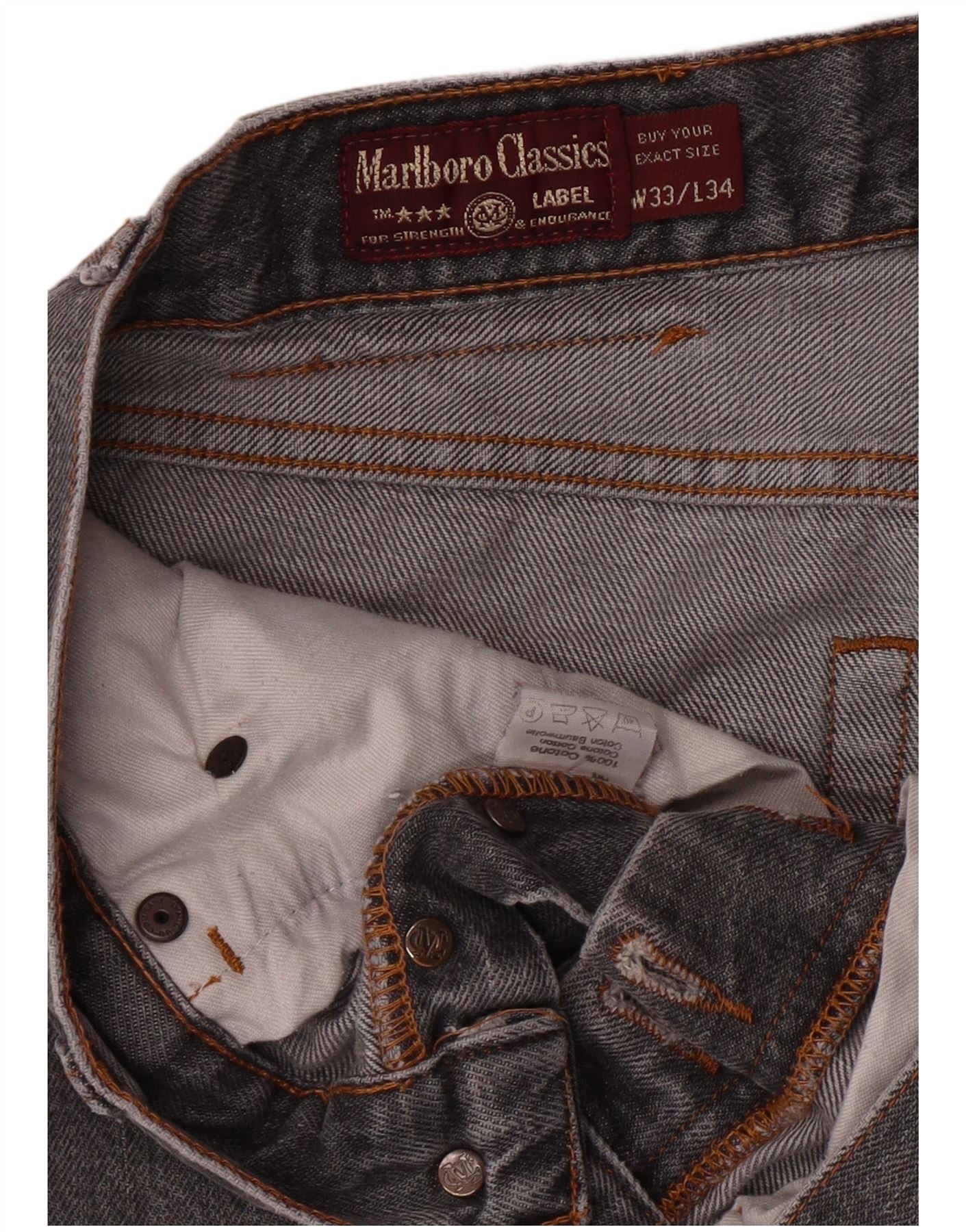 MARLBORO CLASSICS Herren Straight Jeans W33 L31 Graue Baumwolle