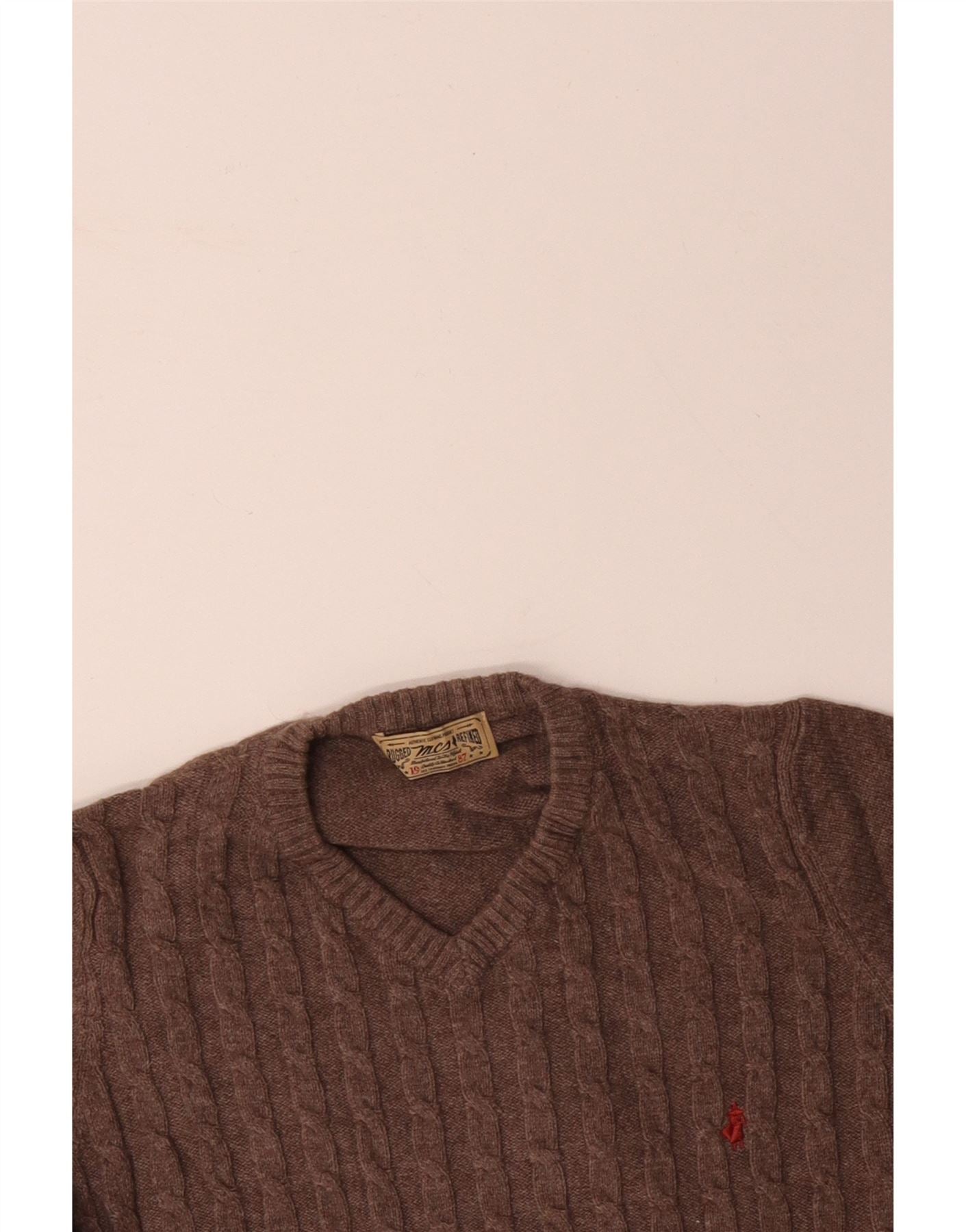 MARLBORO CLASSICS Herren-Pullover mit V-Ausschnitt aus mittelbrauner Wolle