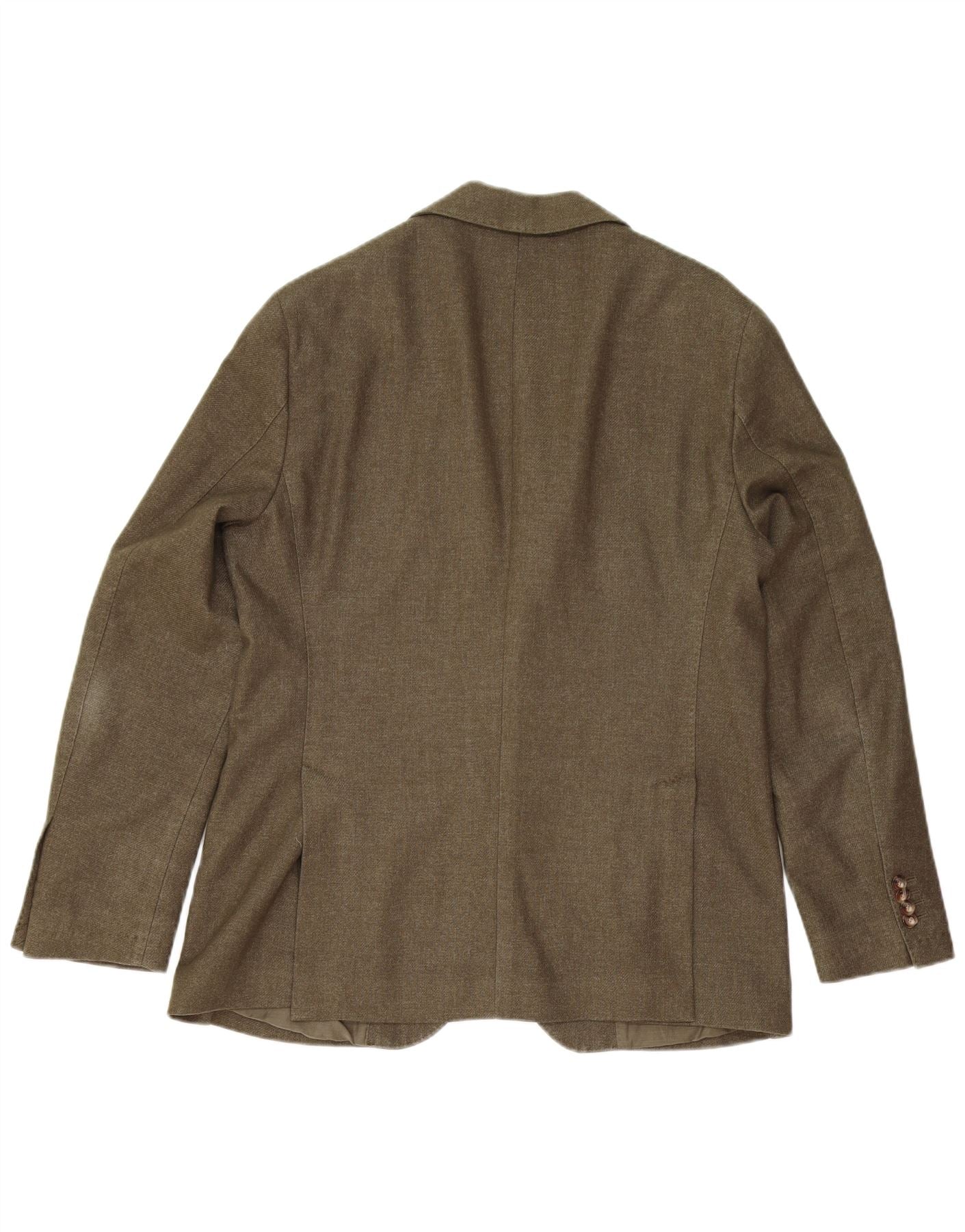 MASSIMO DUTTI Mens 2 Button Blazer Jacket EU 52 Large Khaki Cotton