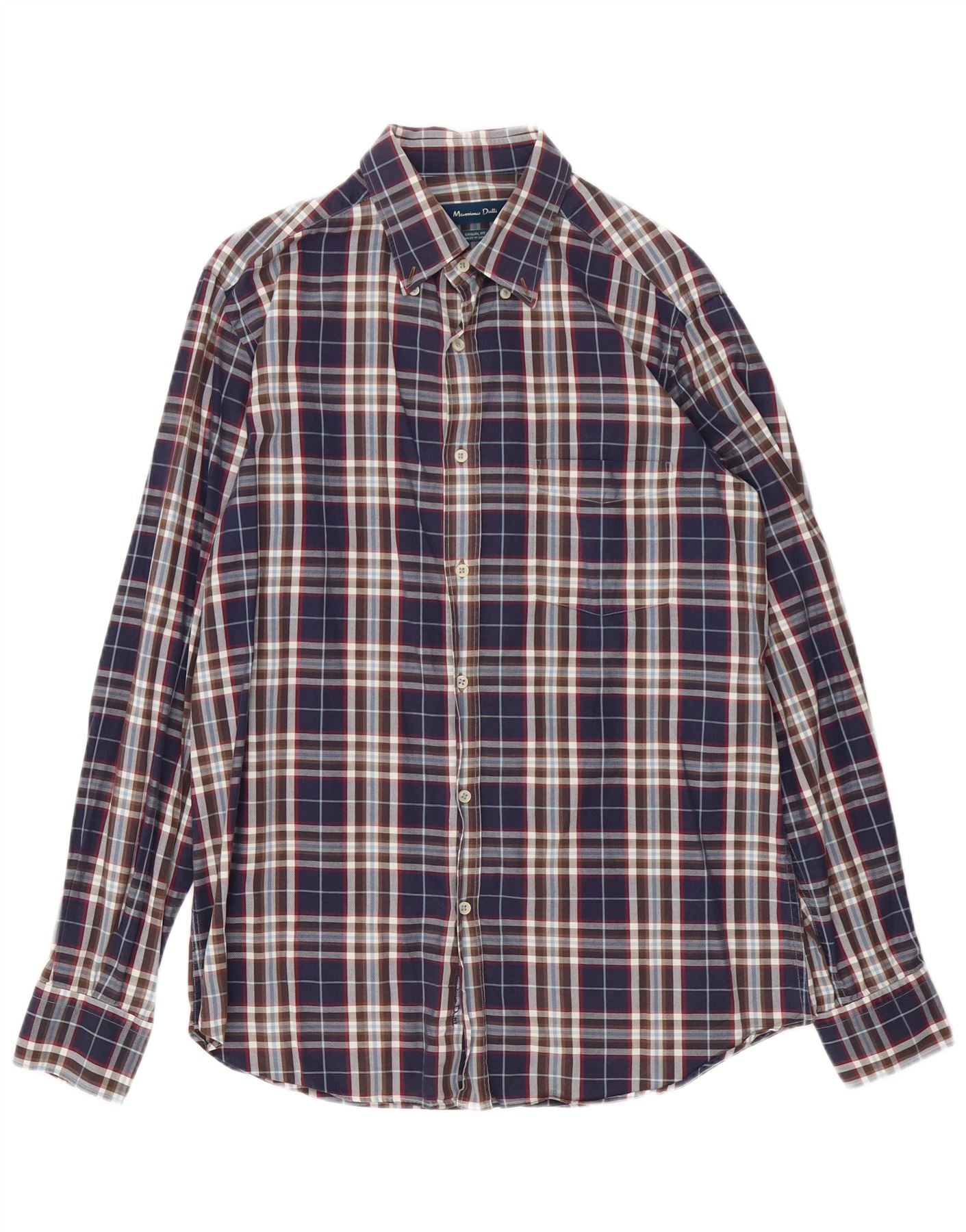 Massimo Dutti Herren-Hemd mit lässiger Passform, mittelmarineblau kariert