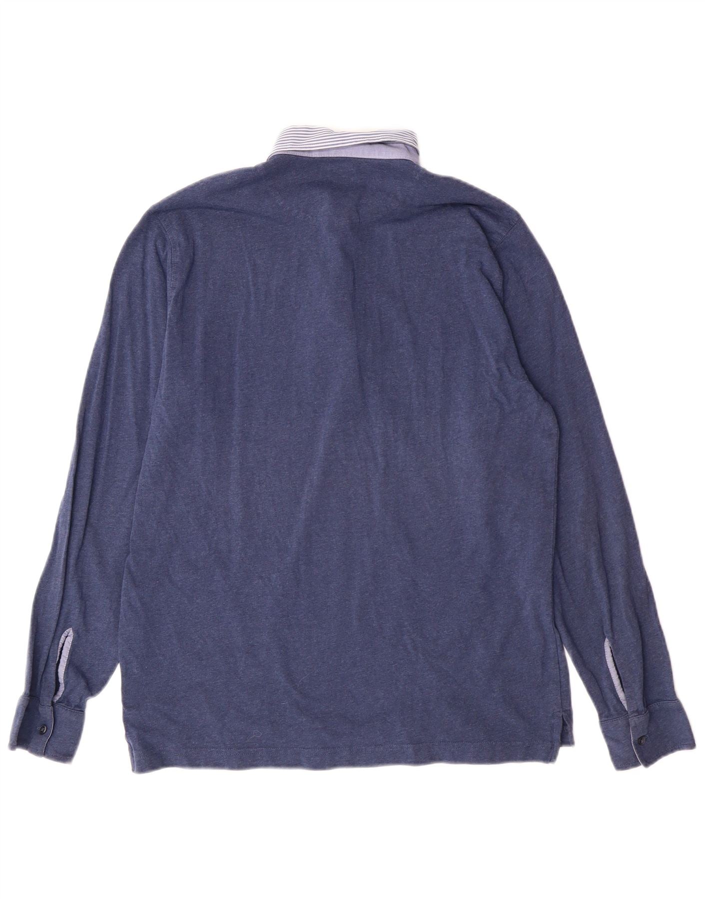 Massimo Dutti Herren-Langarm-Poloshirt, groß, blau, klassisch