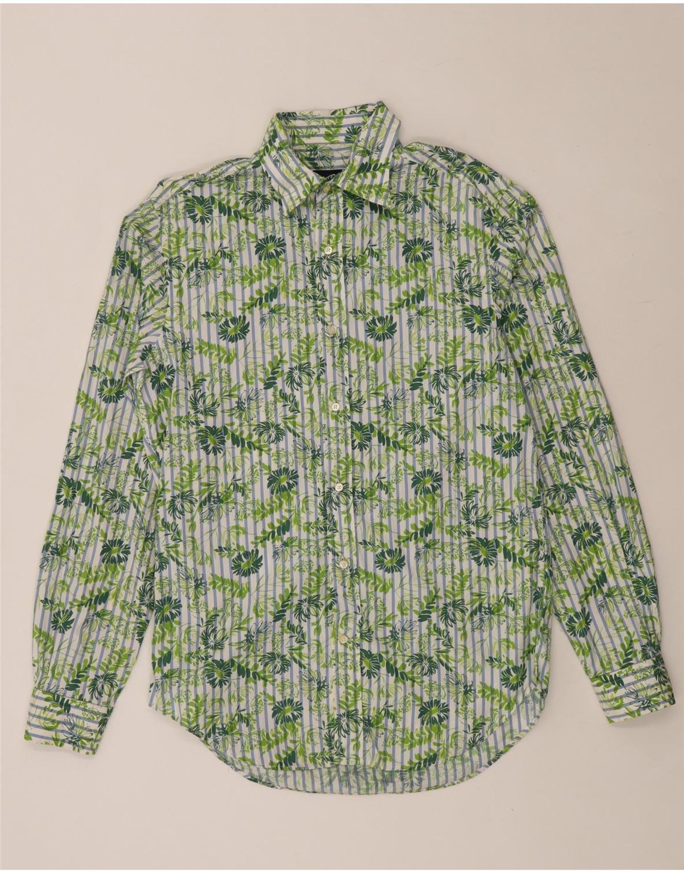 MASSIMO DUTTI Herrenhemd Größe 40 Mittelgrüne geblümte Baumwolle