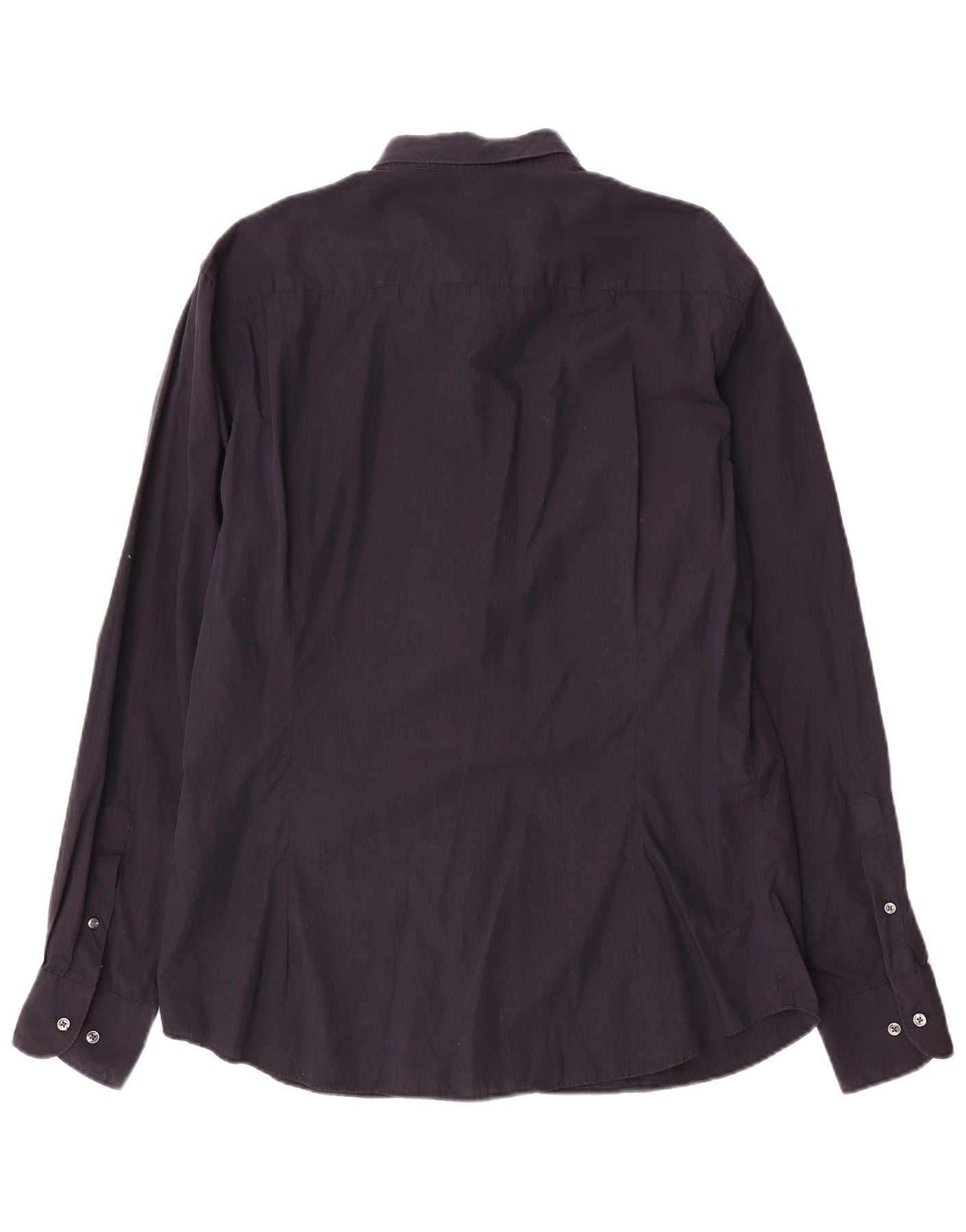 MASSIMO DUTTI Herren Slim Fit Hemd XL Marineblau Baumwolle
