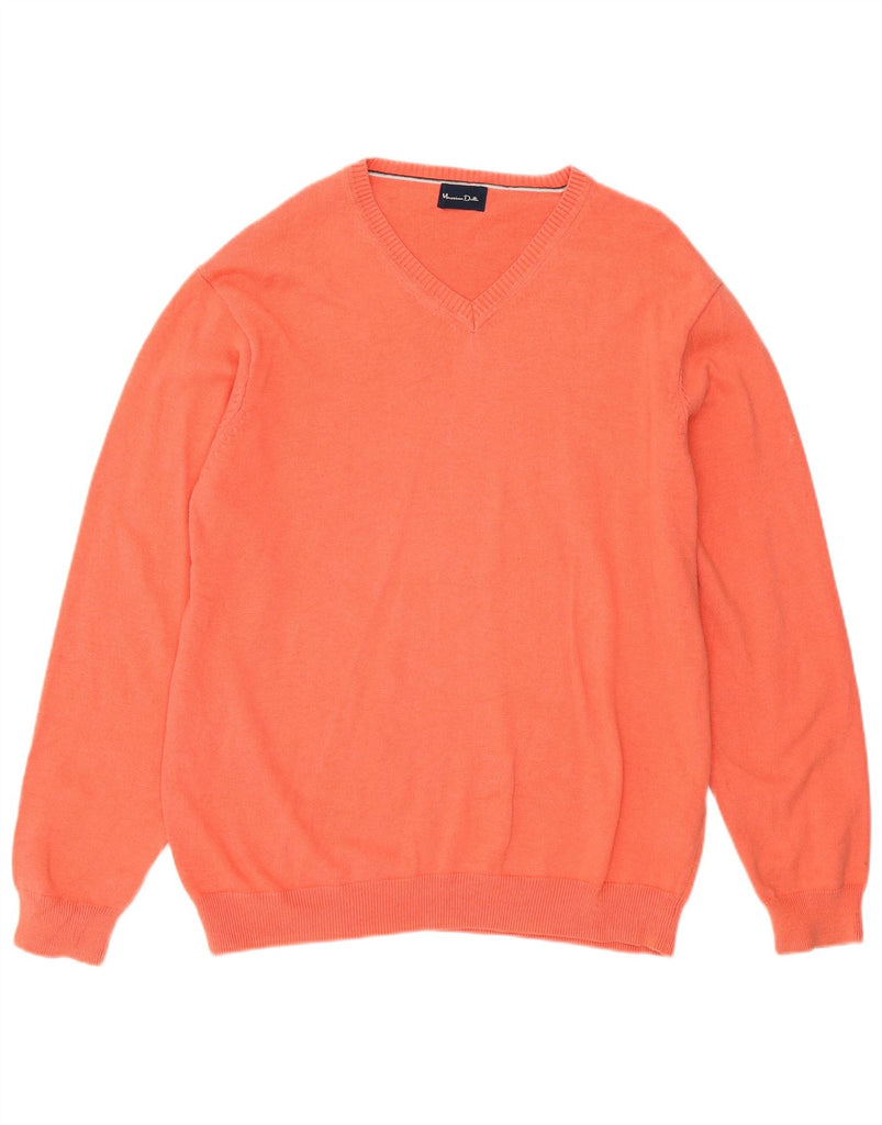 MASSIMO DUTTI Herren-Pullover mit V-Ausschnitt, groß, rosa Baumwolle