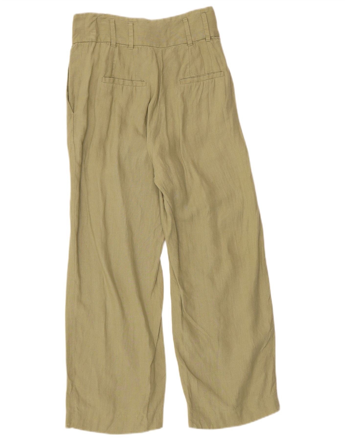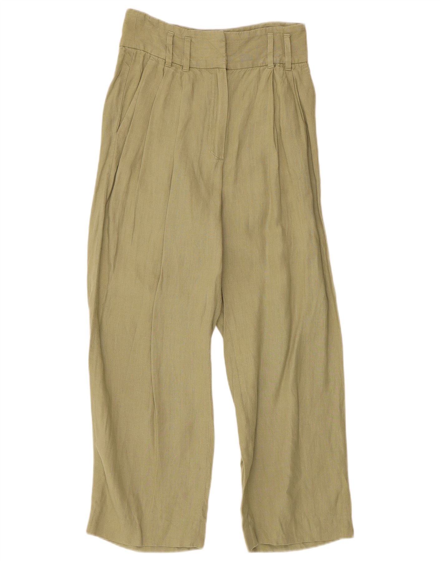 MASSIMO DUTTI Womens High Waist Cropped Trousers EU 34 2XS W26 L24 Khaki