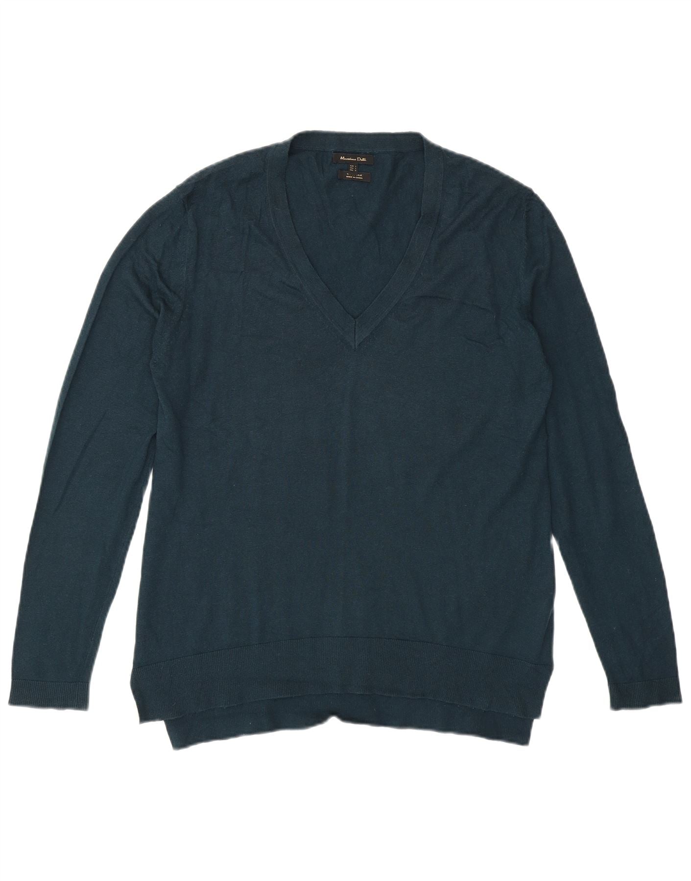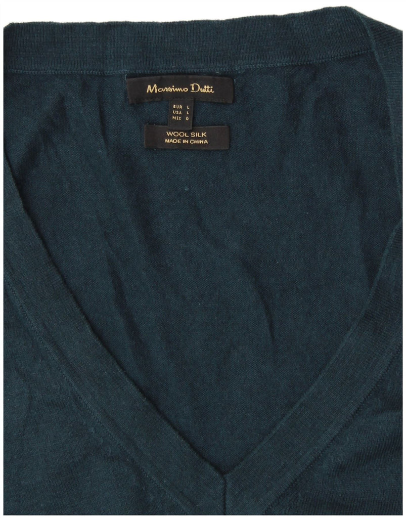 MASSIMO DUTTI Womens V-Neck Jumper Sweater UK 16 Large Green Wool