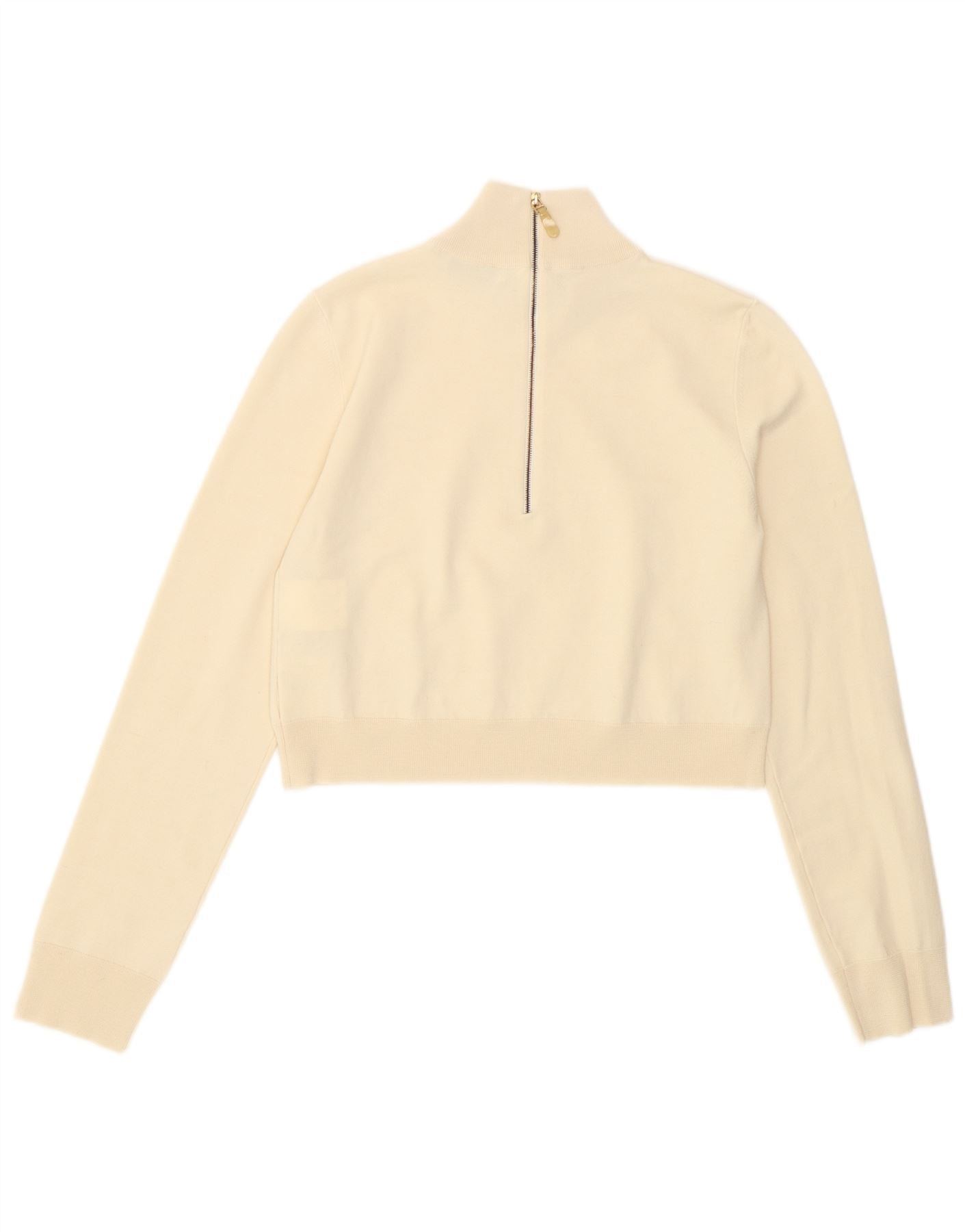 - KI-Beschreibung: Dieser Pullover mit Reißverschluss für Damen von Max Mara ist aus luxuriösem 100-prozentigem Kaschmirstrick gefertigt. Sein cremefarbener Farbton bietet zeitlose Eleganz. Der Stehkragen verfügt über einen praktischen Reißverschluss. Lange Ärmel enden in hübschen Manschetten. Dieser verkürzte Stil bietet eine moderne Silhouette mit einer bequemen regulären Passform.