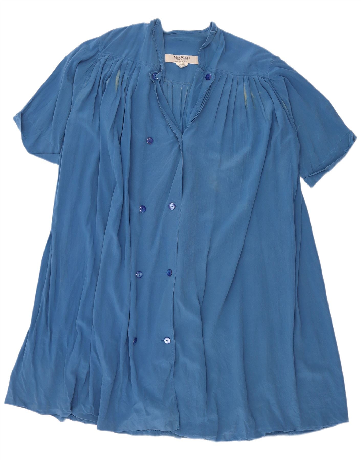 MAX MARA Damen Maxi-Hemdkleid mit kurzen Ärmeln, UK 12, Mittelblau