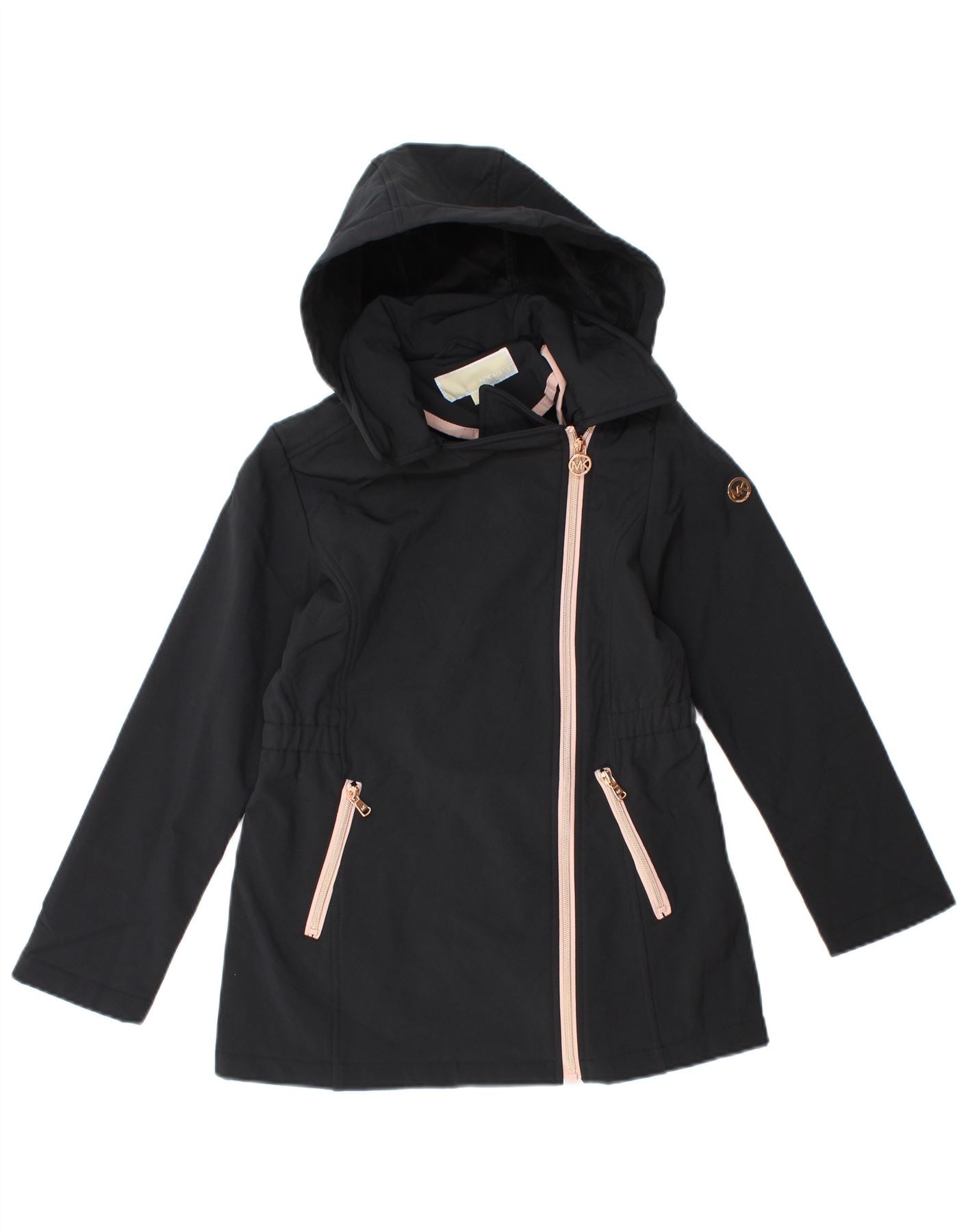MICHAEL KORS Girls Hooded Windbreaker Jacket 10-11 Years Black Polyester