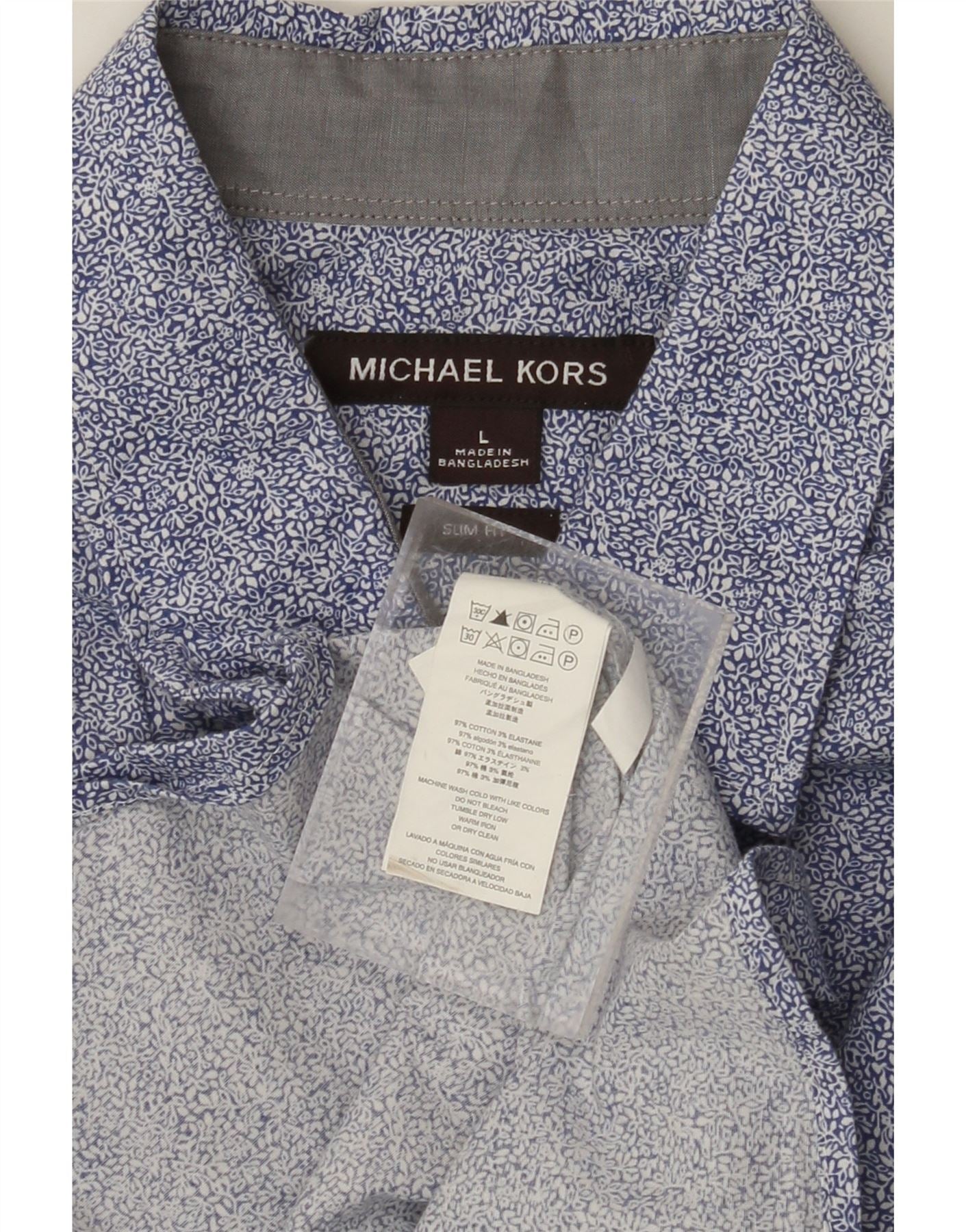 MICHAEL KORS Herren-Slim-Fit-Hemd, groß, blau, geblümt, Baumwolle