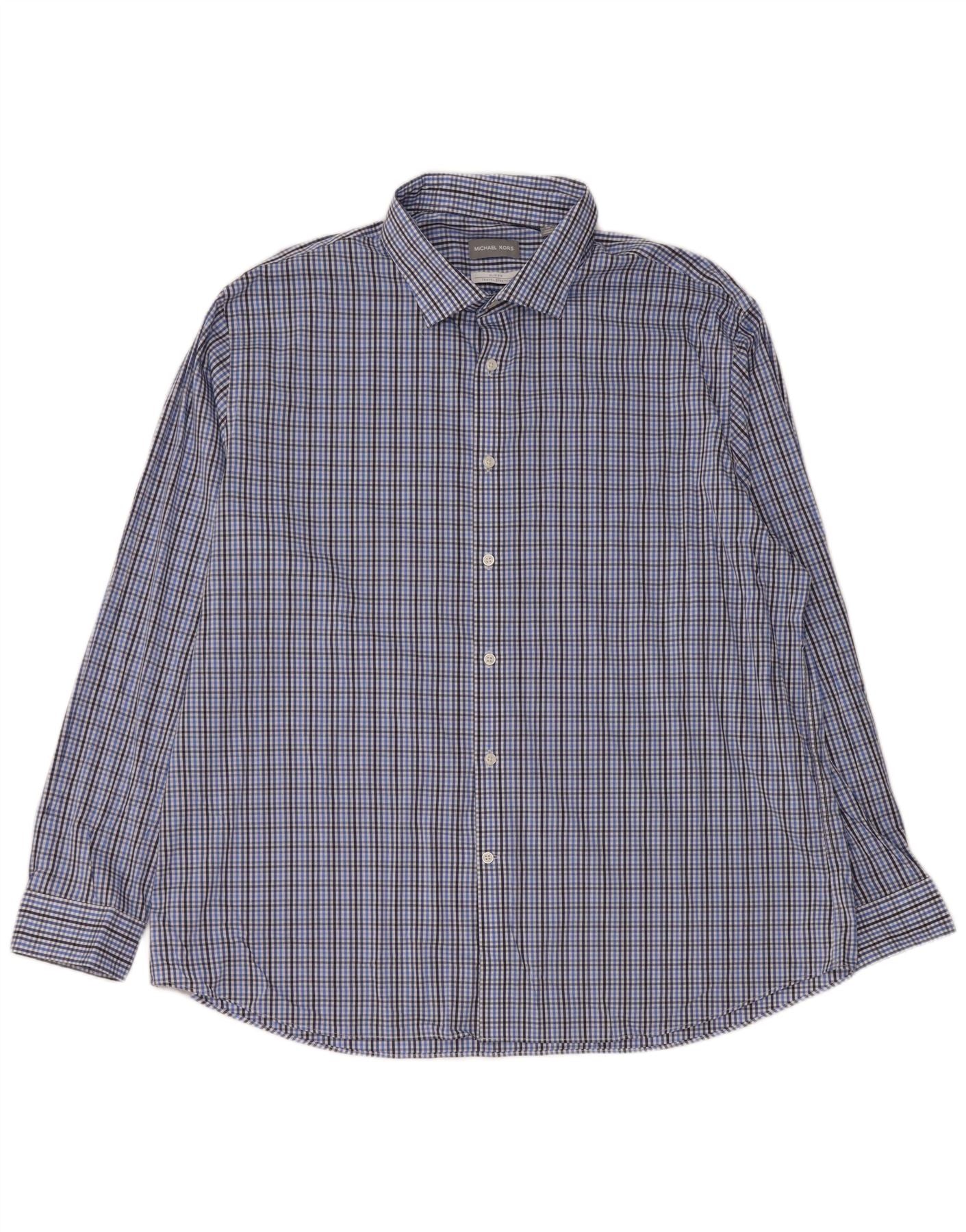 MICHAEL KORS Herren-Slim-Fit-Hemd, Größe 18 1/2 2XL, blau karierte Baumwolle