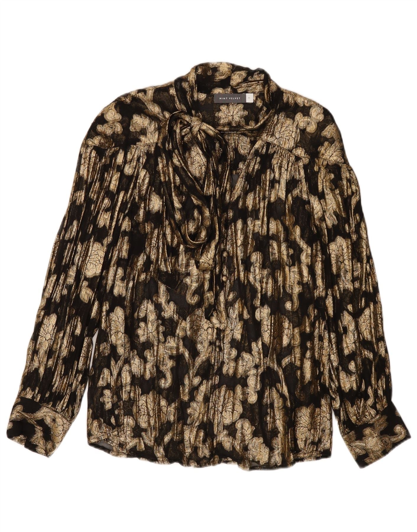 MINT VELVET Damen-Hemdbluse mit Vorderschnürung, UK 14, mittelgoldene, geblümte Viskose