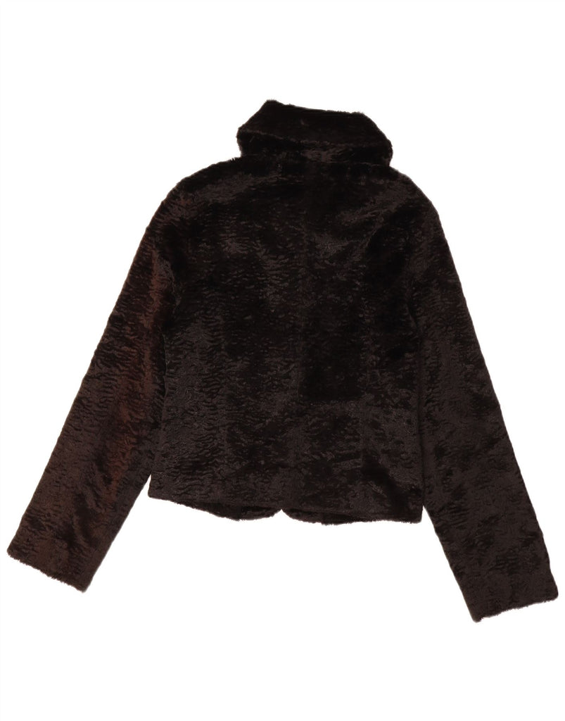 MISS SELFRIDGE Womens Crop Faux Fur Bomber Jacket UK 6 XS Black Acetate