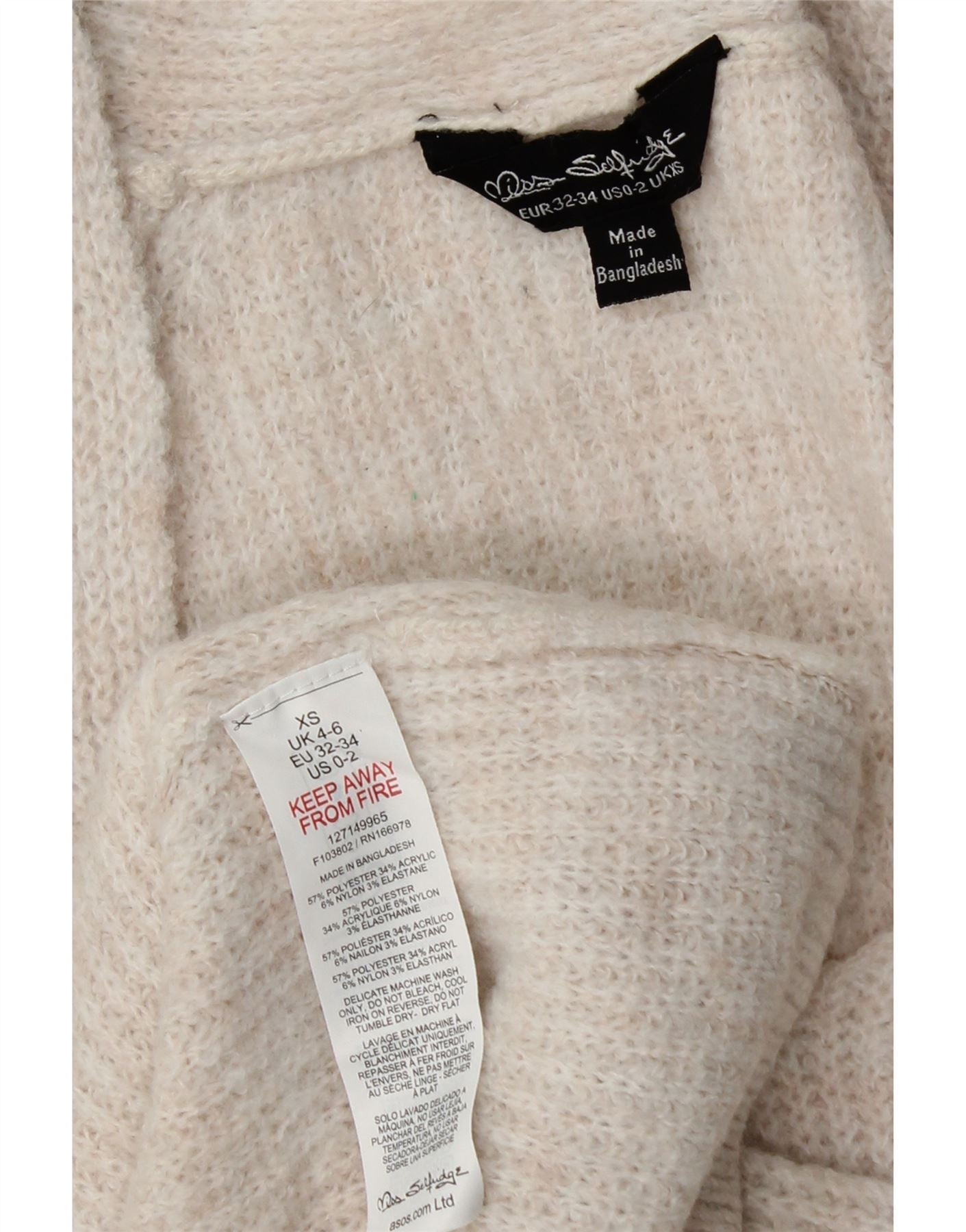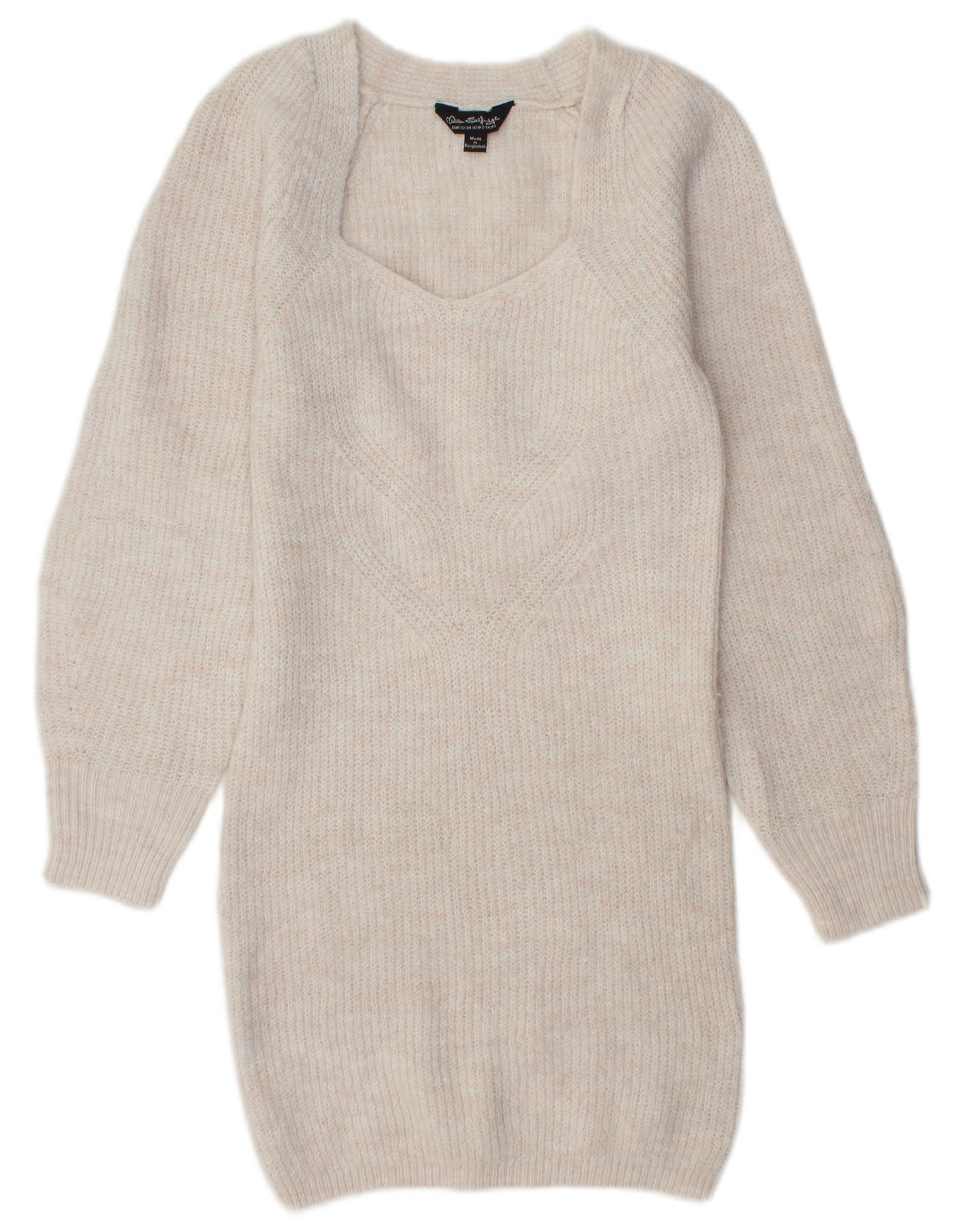 MISS SELFRIDGE Womens Long Sleeve Jumper Dress UK 4/6 XS Off White