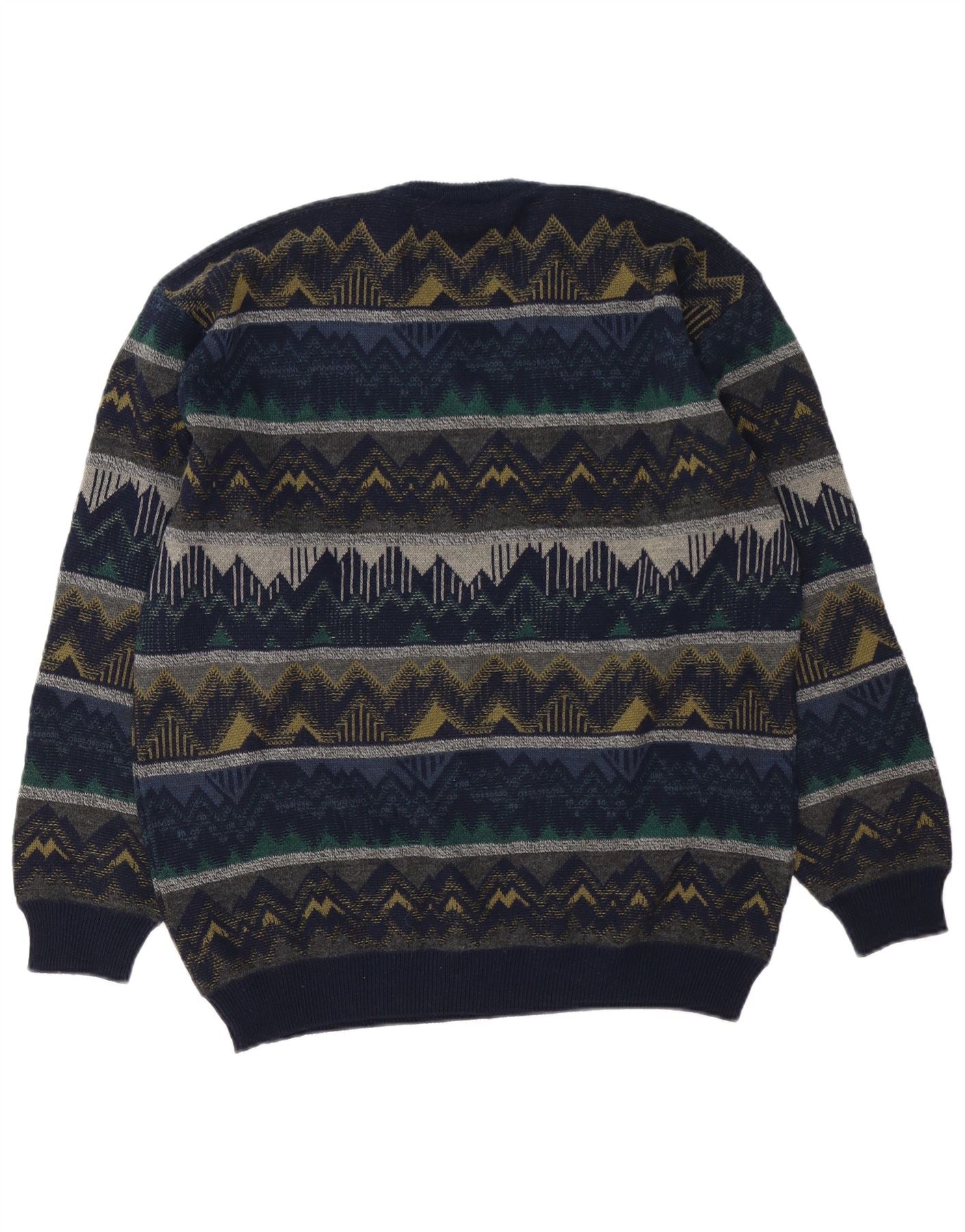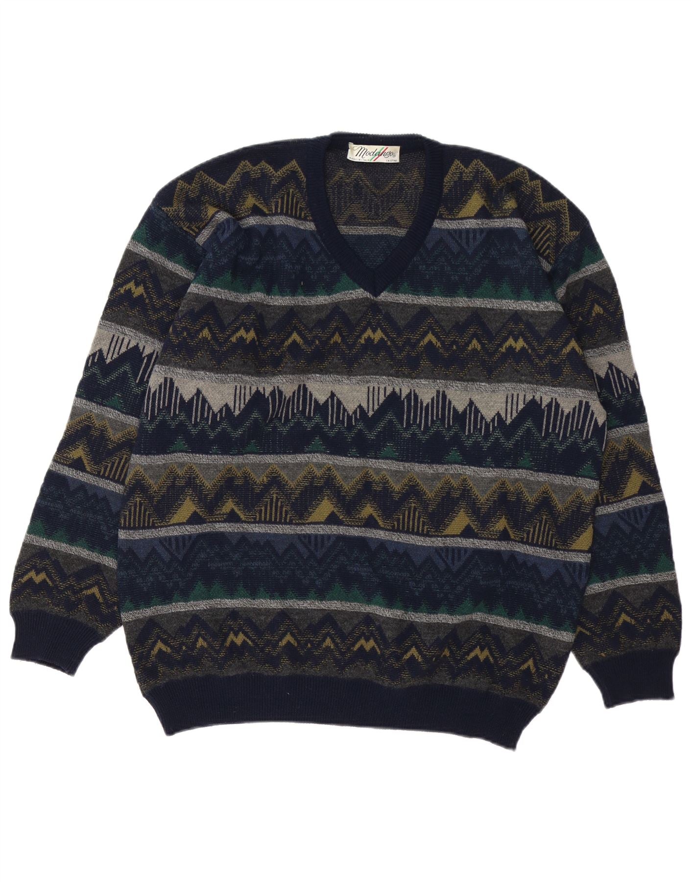 MODANGO Herren-Pullover mit V-Ausschnitt, groß, marineblau, geometrisches Acryl