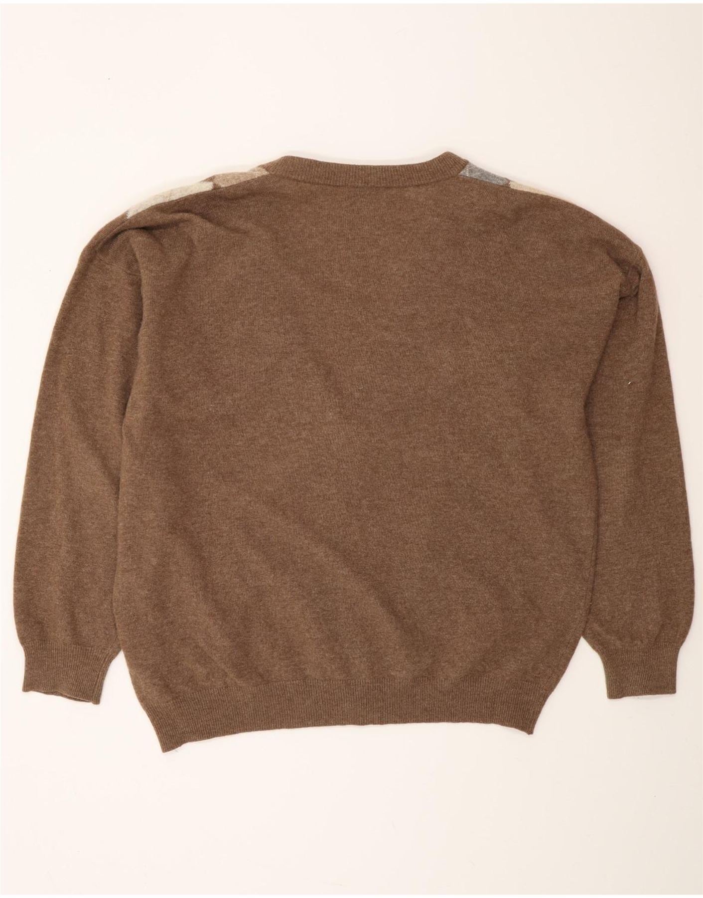 MONELLO Herren-Cardigan-Pullover IT 52 Große braune Argyle-/Diamantwolle