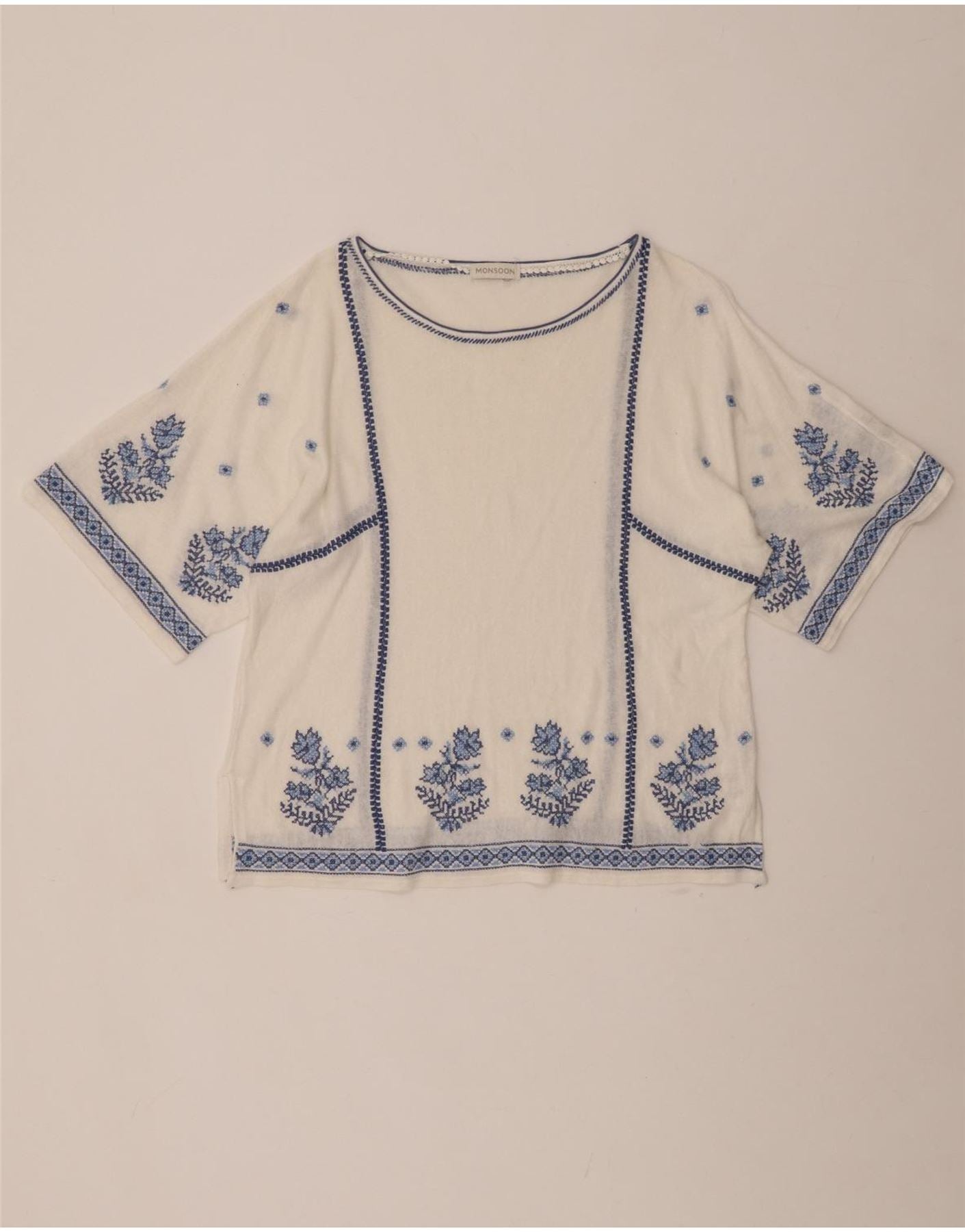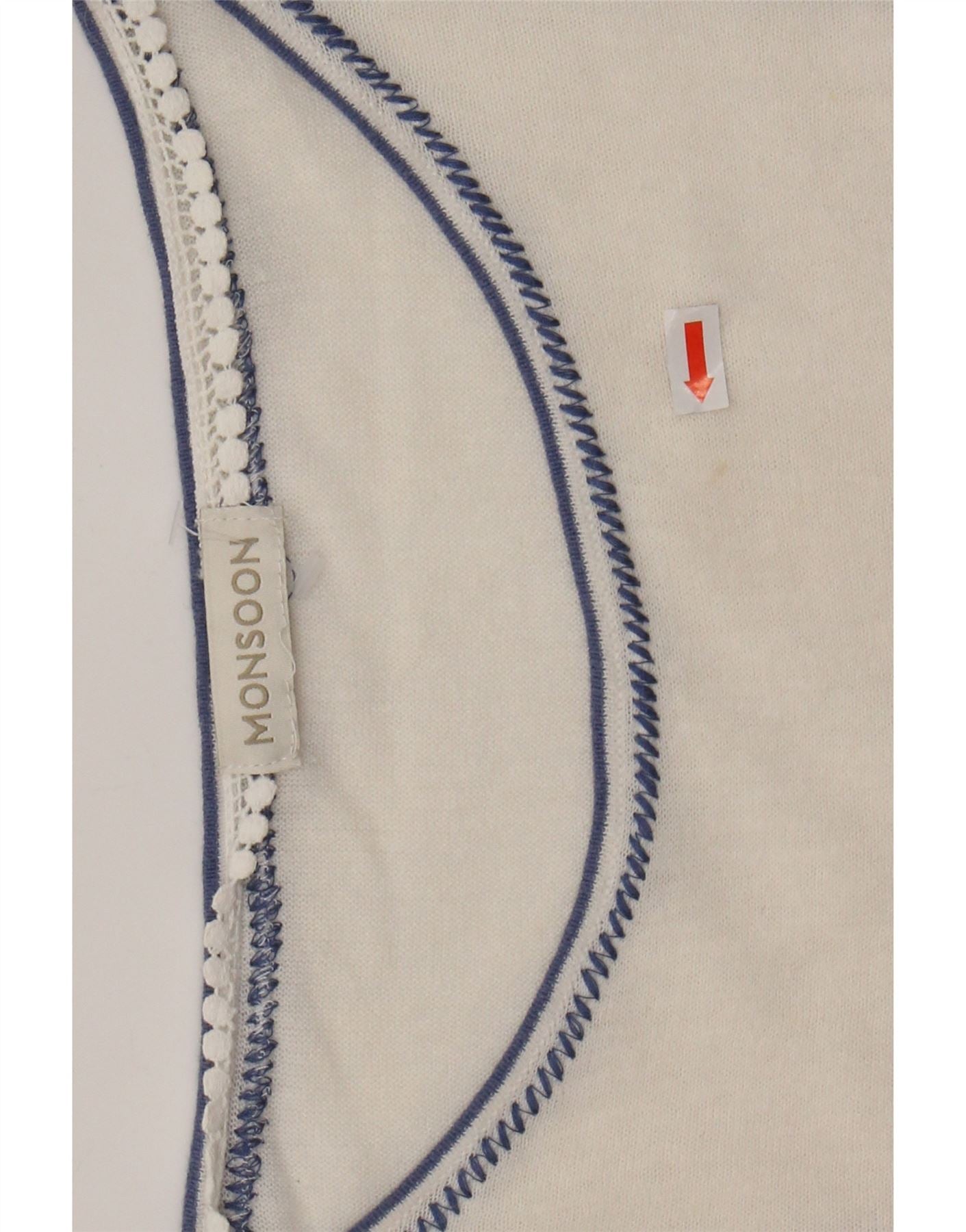 MONSOON Damen-Blusenoberteil, UK-Größe 46, Größe L, gebrochenes Weiß, geblümtes Leinen
