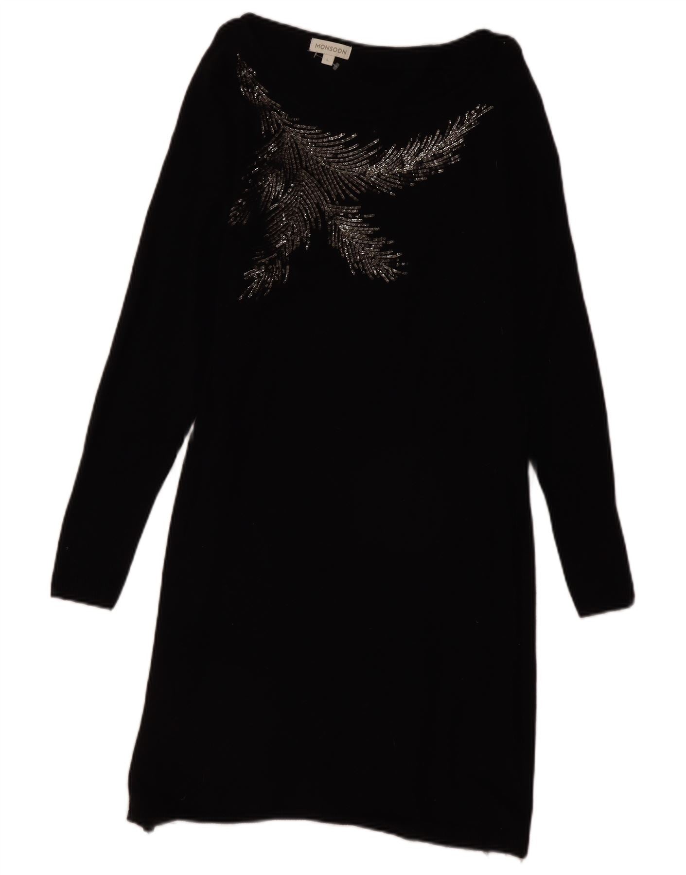 Home > Damen > Depop-Kleidung > MONSOON Damen-Pulloverkleid mit Grafik, Gr. 46, Größe L, Schwarz, Baumwolle