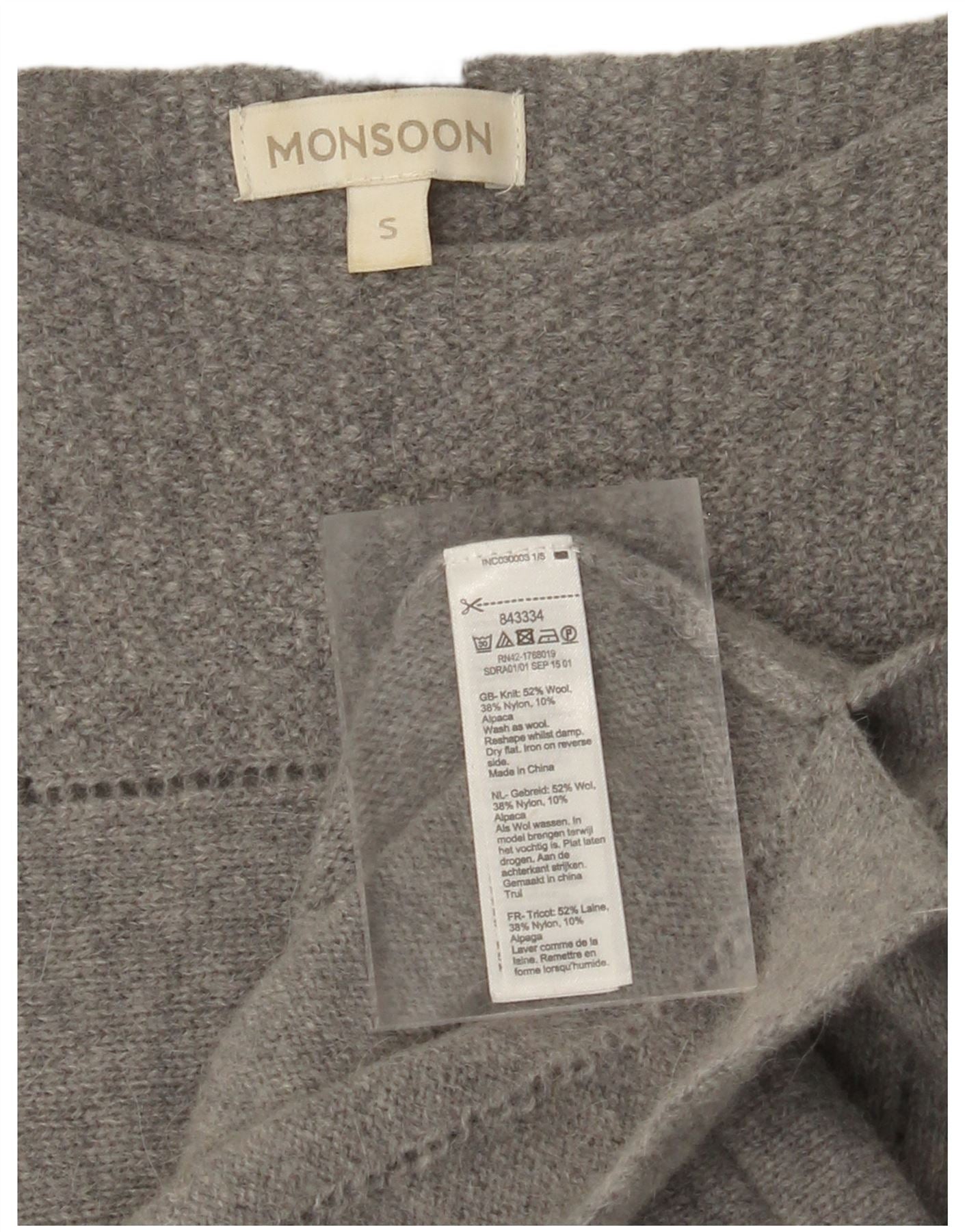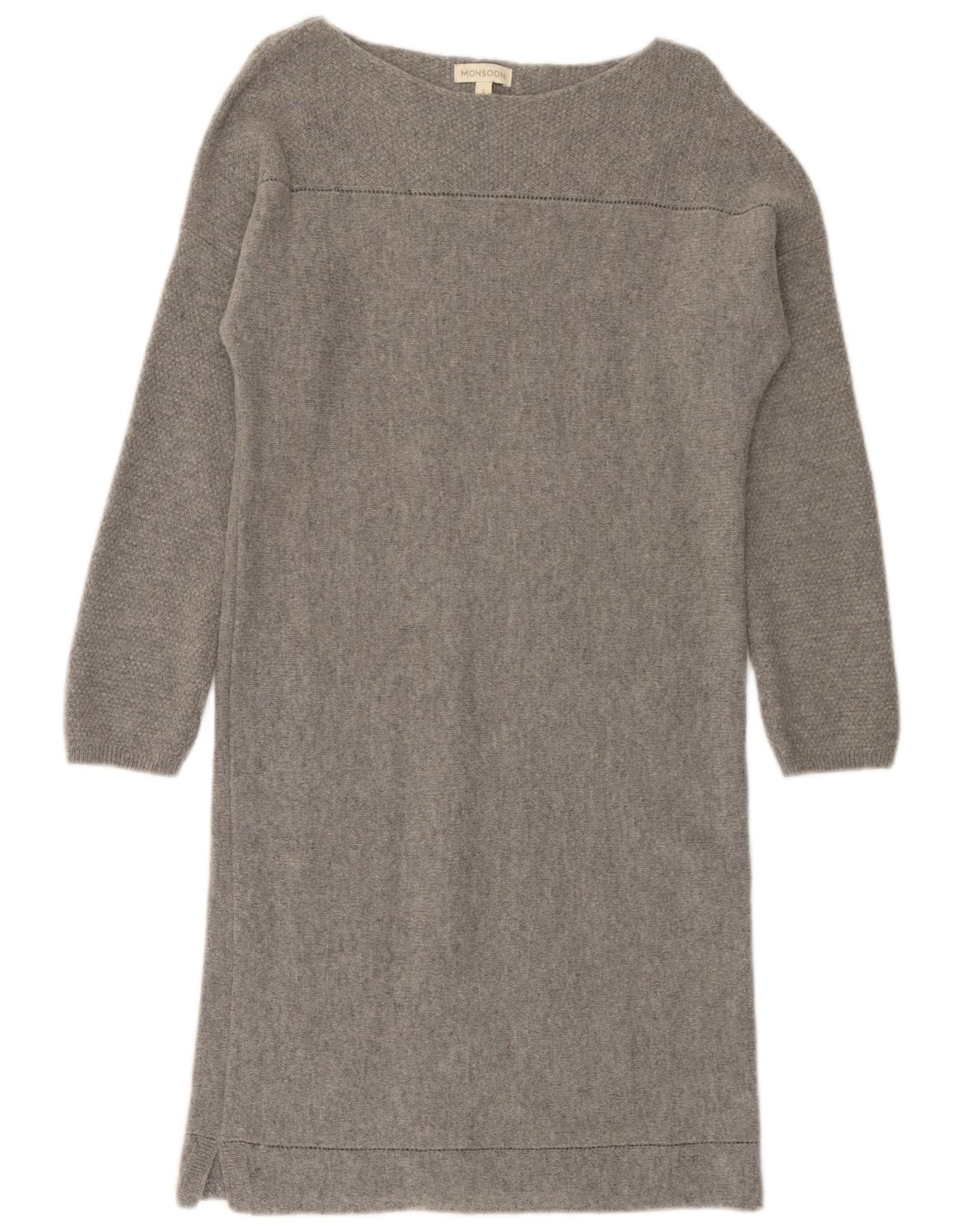 MONSOON Damen Langarm-Pulloverkleid UK 10 Small Graue Wolle
