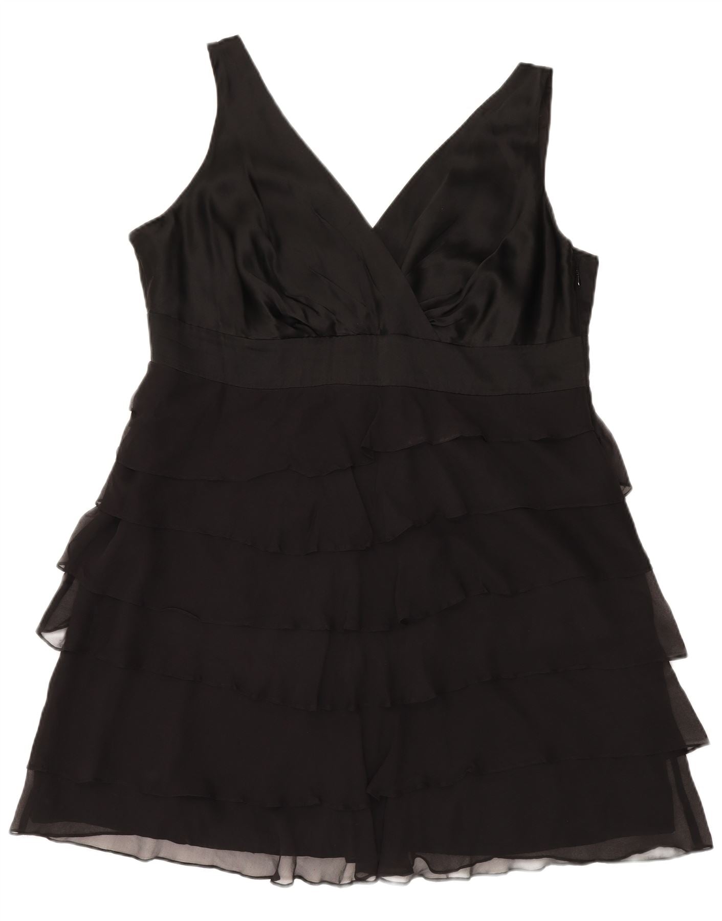 MONSOON Damen ärmelloses, gestuftes Kleid, UK 22 3XL, schwarze Seide