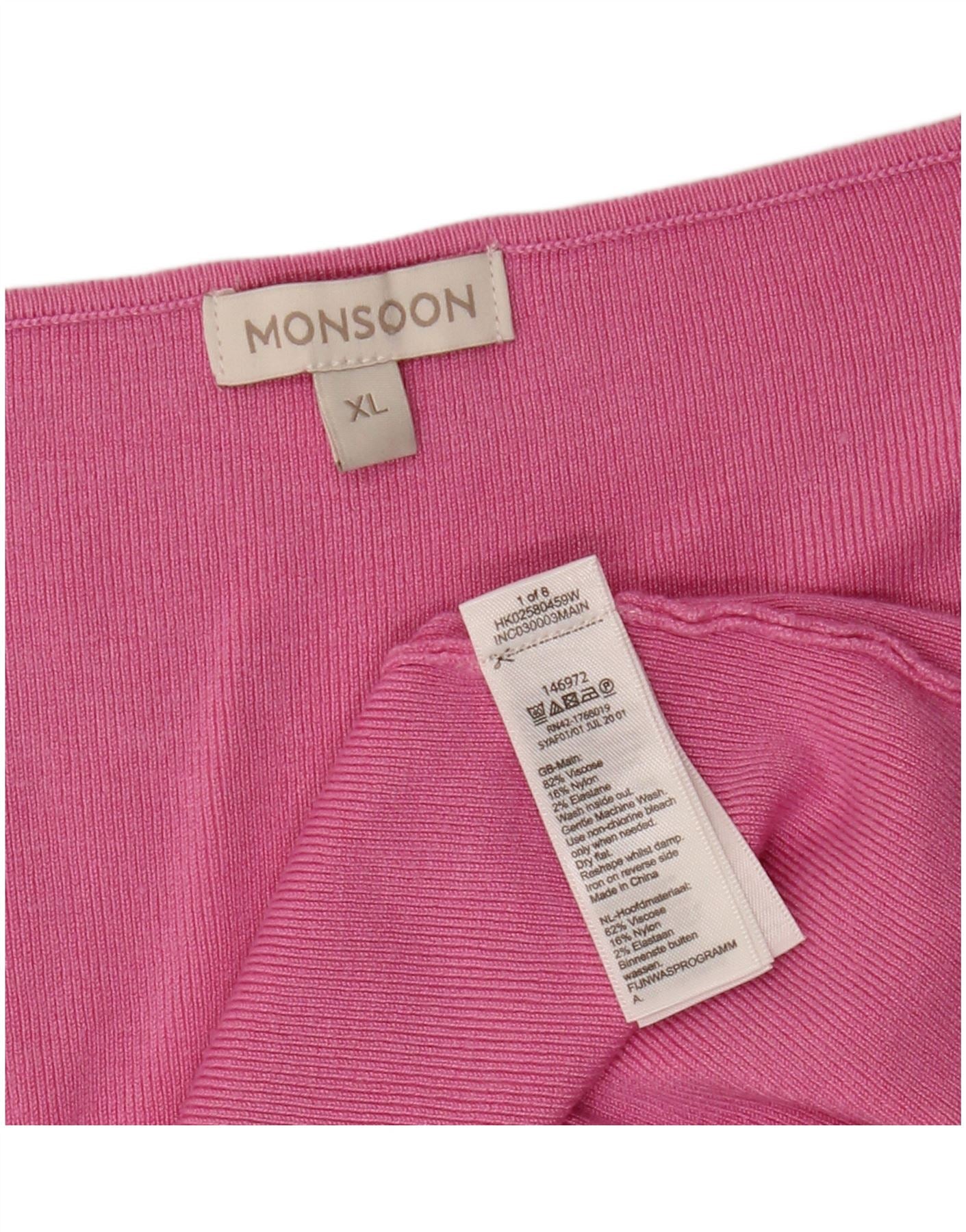 MONSOON Damen-Pullover mit V-Ausschnitt, Gr. 18, XL, rosa Viskose