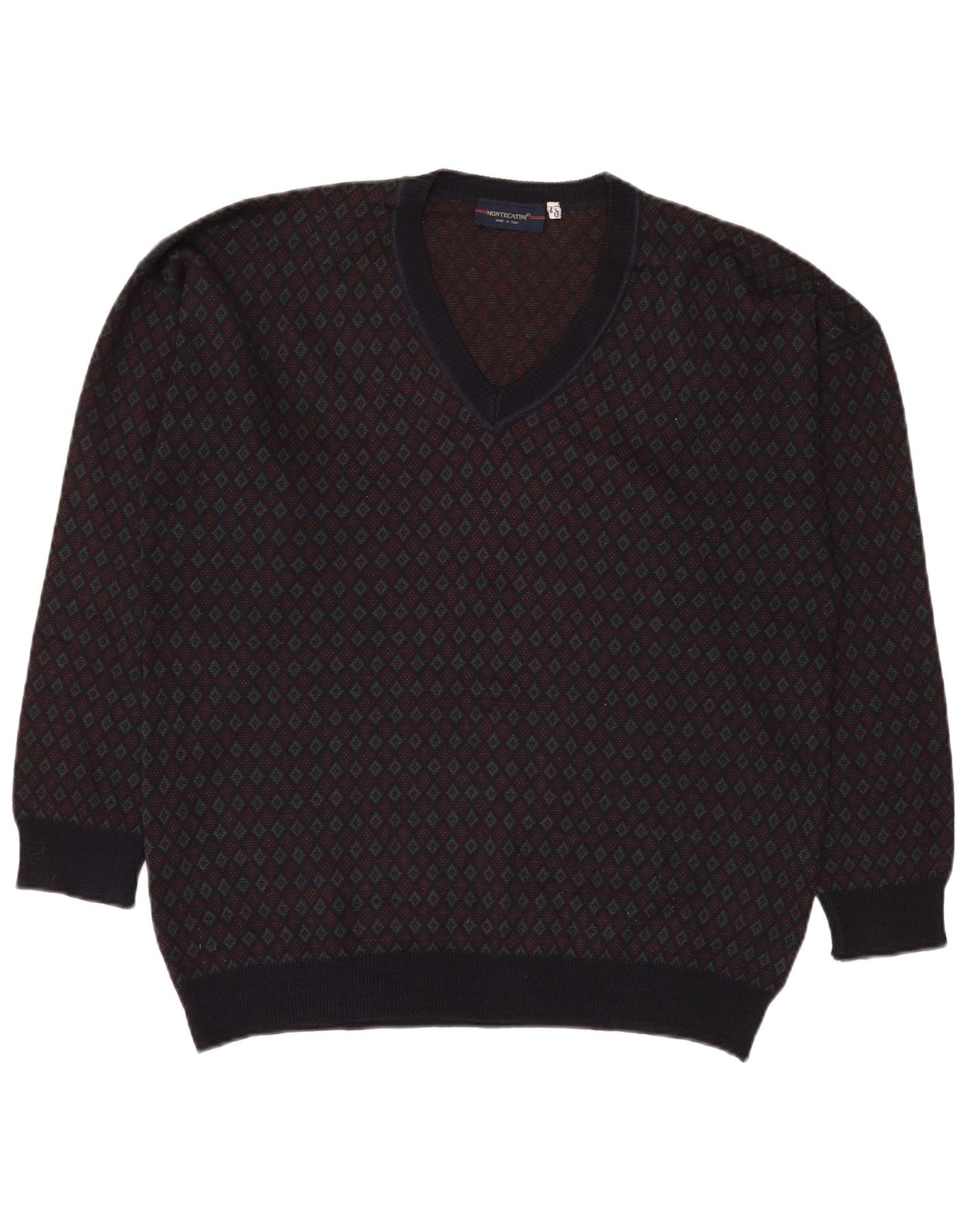 MONTECATINI Herren-Pullover mit V-Ausschnitt, groß, mehrfarbig, geometrisch