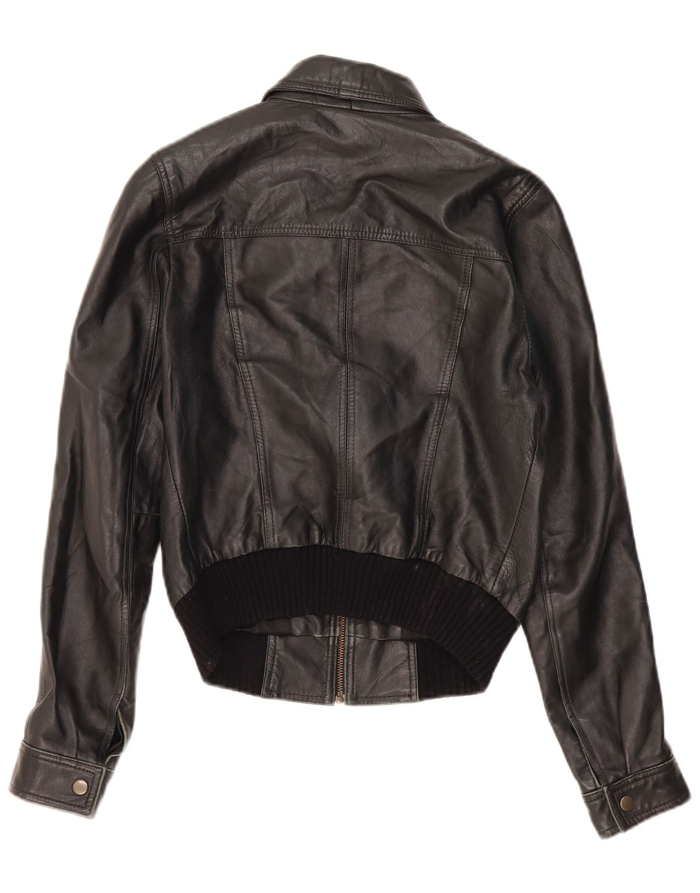 MONTGOMERY Damen Crop Lederjacke UK 14 Großes schwarzes Leder