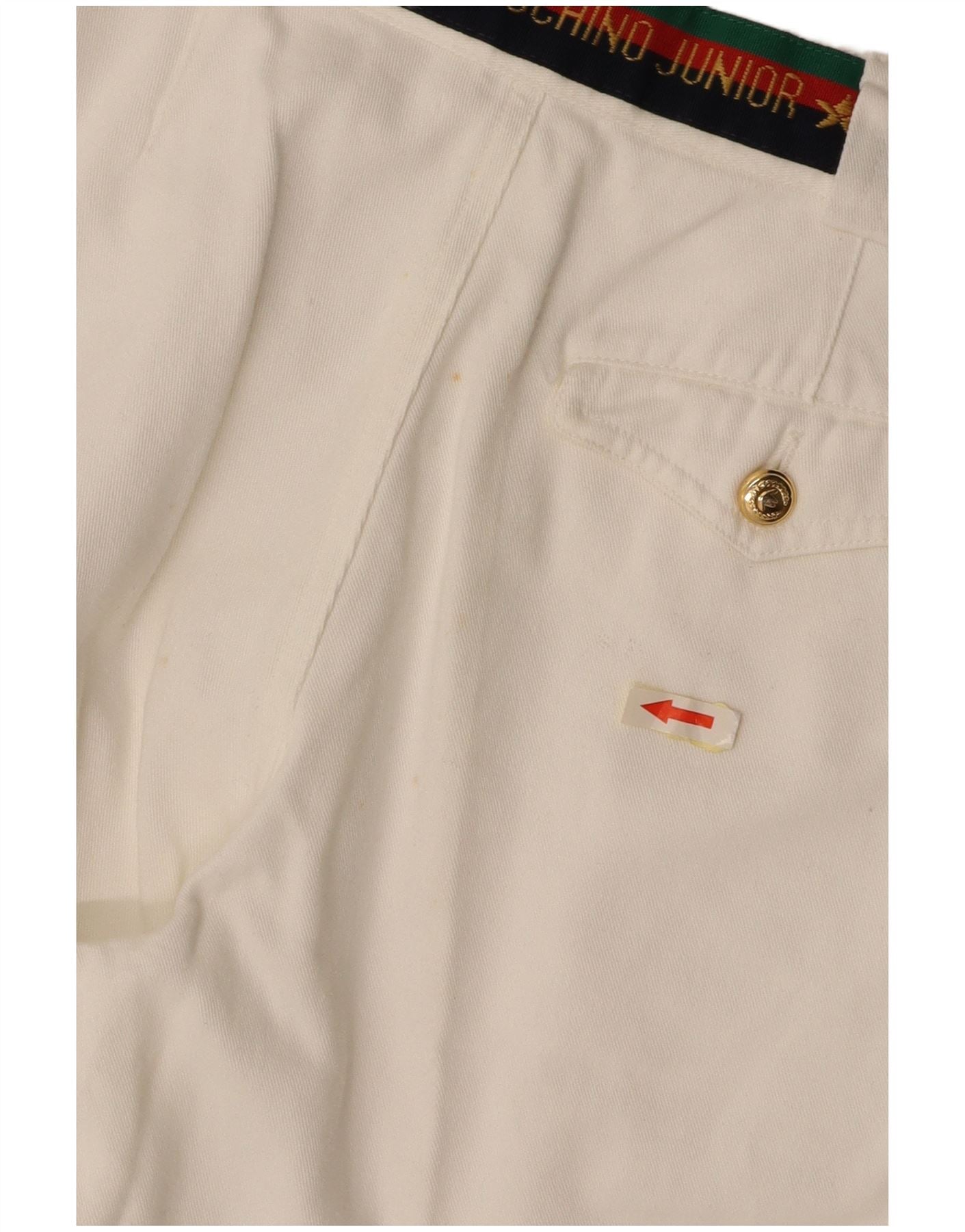 MOSCHINO Jungen-Anzughose mit grafischen Klammern, 9–10 Jahre, W24 L25, weiße Baumwolle