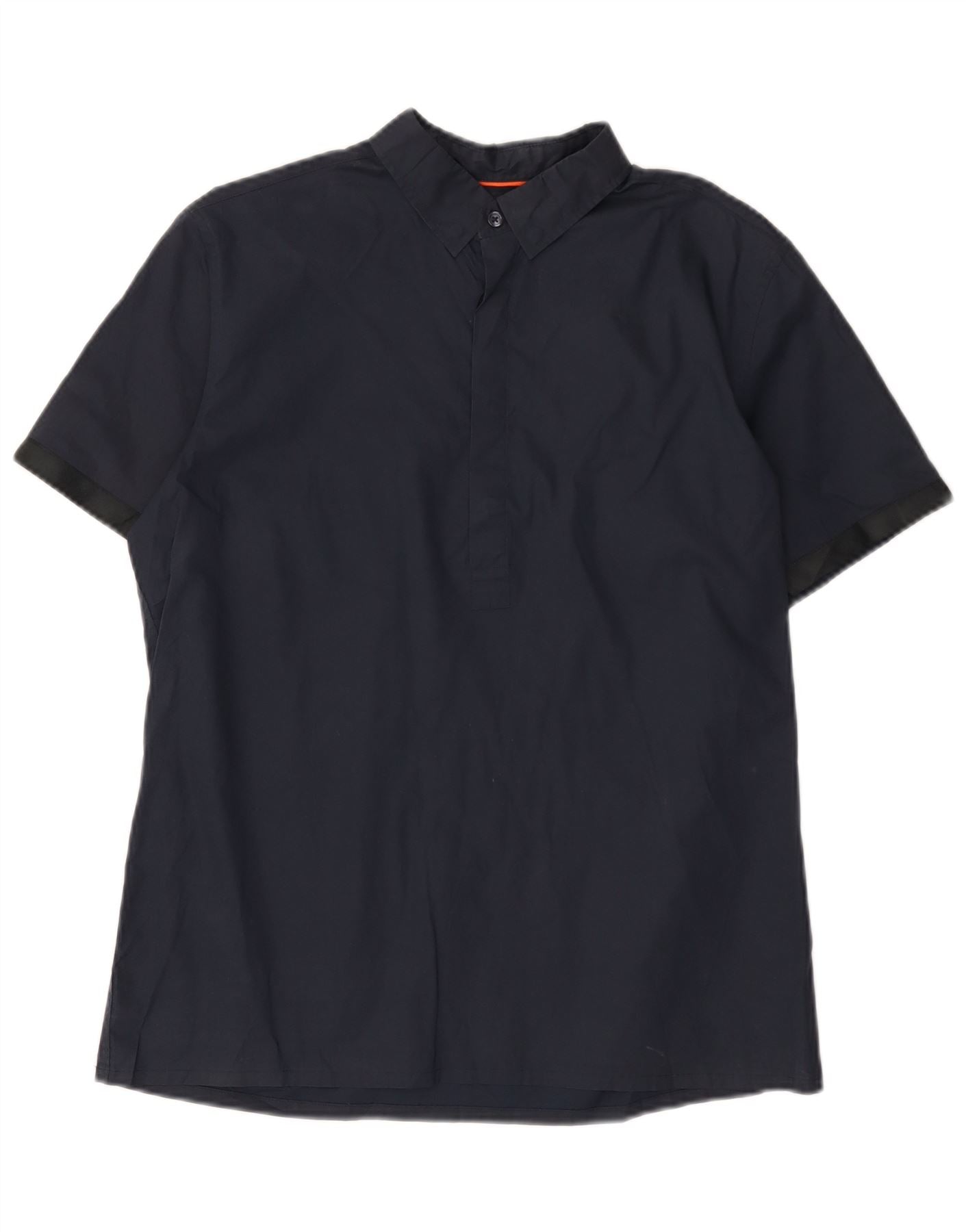 - KI-Beschreibung: Dieses T-Shirt-Oberteil für Herren von Mossimo ist aus 100 % gewebter Baumwolle in sattem Marineblau gefertigt. Es verfügt über einen modernen Kragenausschnitt und eine teilweise Knopfleiste. Kurze Ärmel und eine schmale Passform sorgen für eine moderne Silhouette. Das Design bietet einen eleganten und dennoch komfortablen Look, perfekt für vielseitiges Styling.
