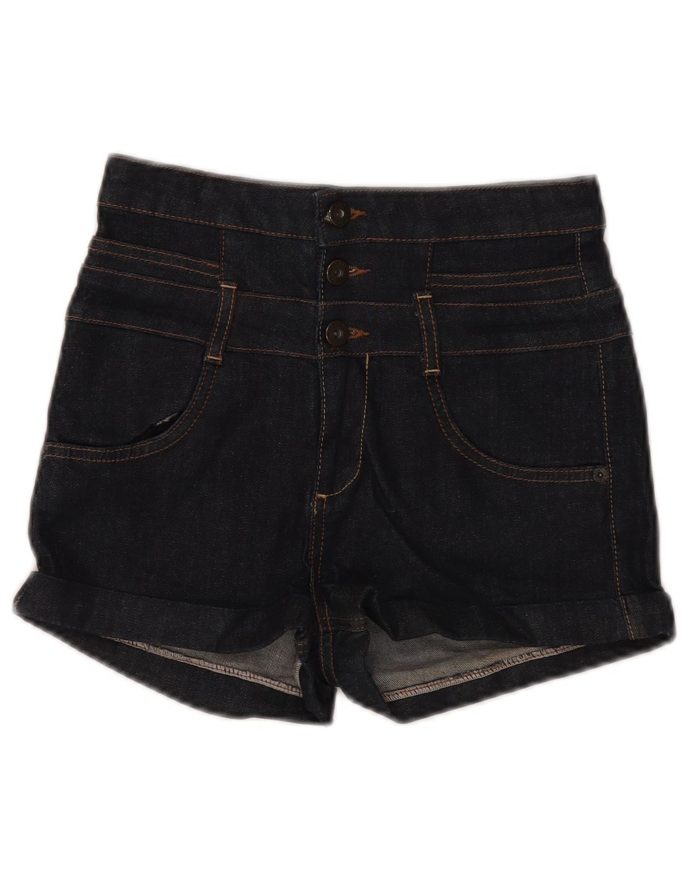MOTO Damen-Jeansshorts mit hoher Taille, UK 10, Größe S, W28, Marineblau, Baumwolle