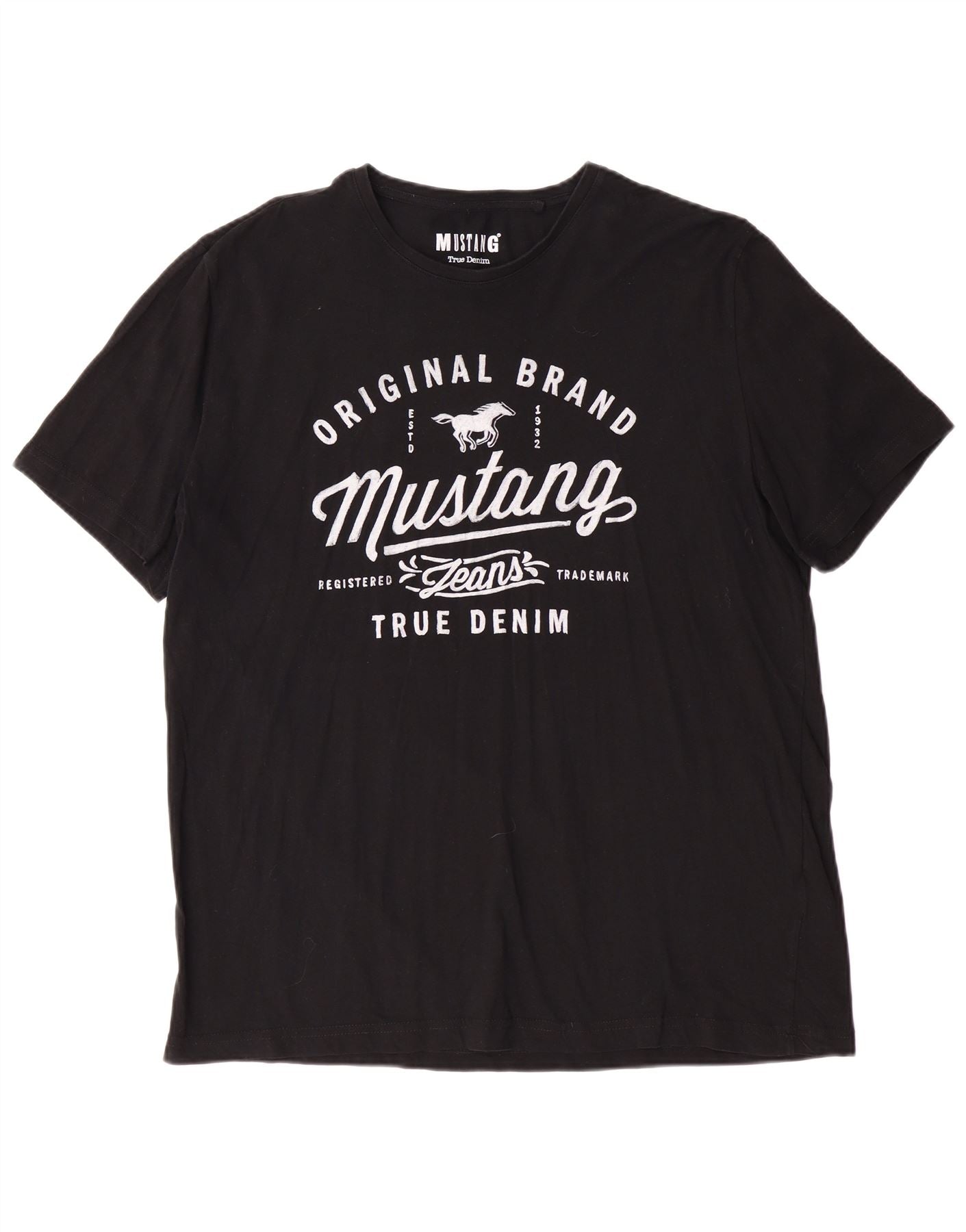 MUSTANG Herren Grafik T-Shirt Top XL Schwarz Baumwolle