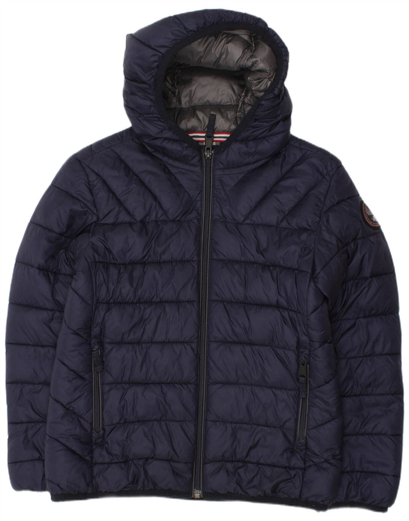 NAPAPIJRI Wattierte Jacke für Jungen mit Kapuze, 7–8 Jahre, marineblaues Polyamid