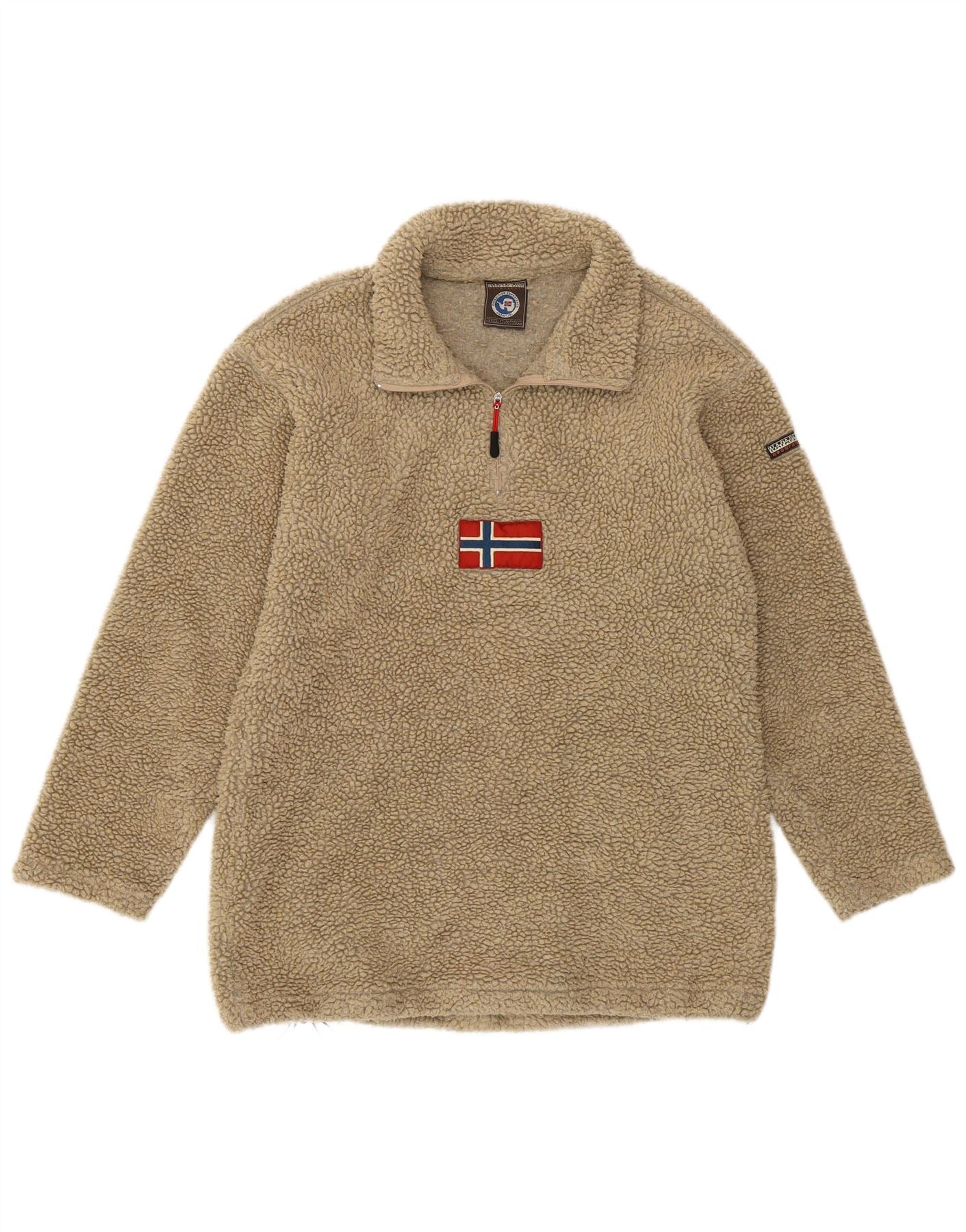 Napapijri Damen-Fleecepullover mit grafischem Reißverschluss am Hals, groß, beige, Polyacryl